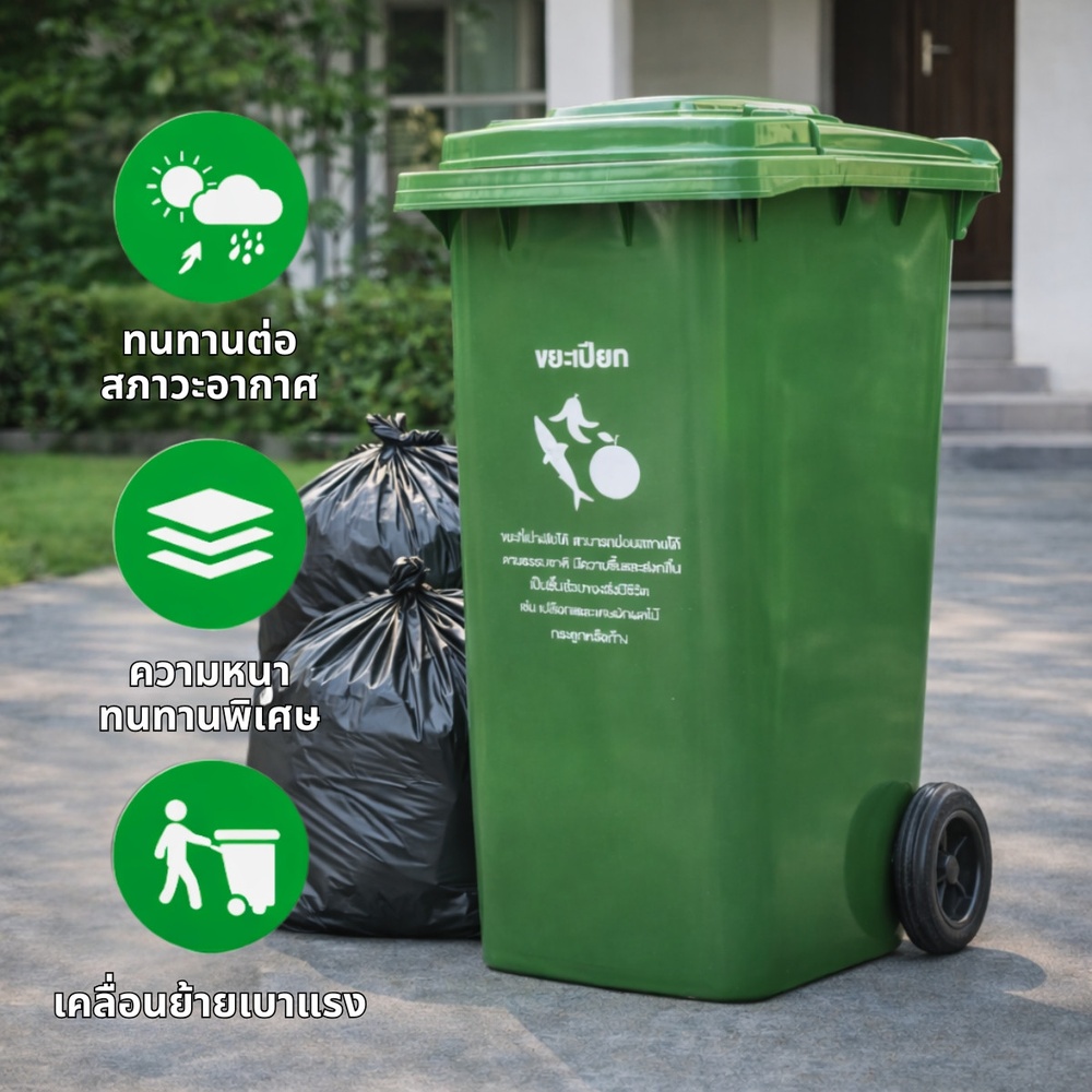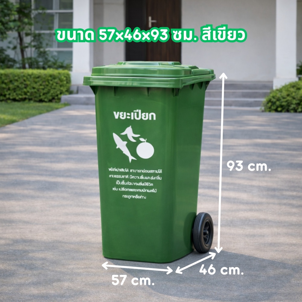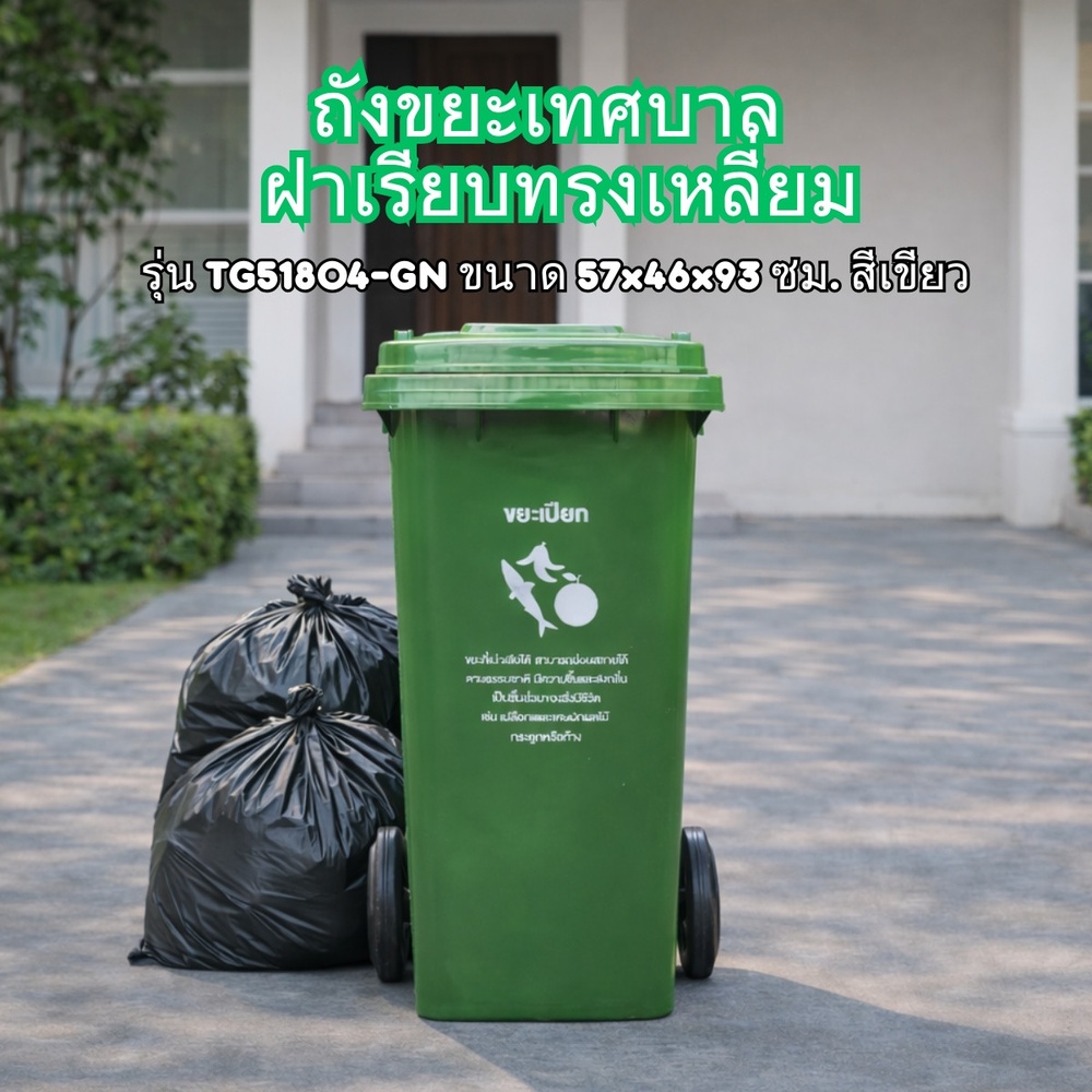 KLEANZY ถังขยะเทศบาลรุ่น 120 ลิตร (สีเขียว) ออกแบบมาเพื่อตอบโจทย์การแยกขยะในครัวเรือน ร้านอาหาร และชุมชน ด้วยขนาดความจุที่พอเหมาะ (120 ลิตร) ไม่เล็กเกินไปจนต้องทิ้งบ่อย และไม่ใหญ่จนเกะกะพื้นที่ เหมาะอย่างยิ่งสำหรับการตั้งไว้ในบริเวณที่ประกอบอาหารหรือโซนจัดการขยะอินทรีย์