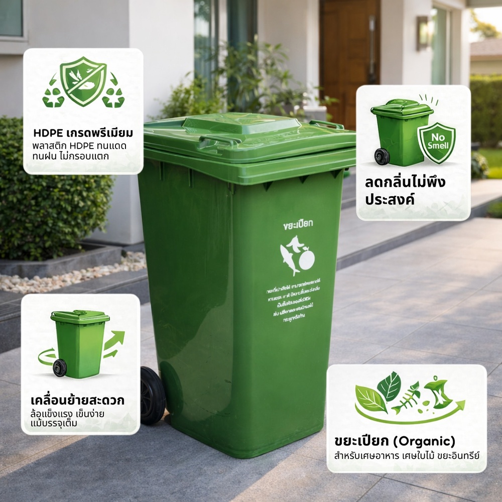 ด้วยคุณสมบัติของพลาสติก HDPE เกรดสูง ทำให้ถังขยะรุ่นนี้ทนทานต่อกรดและด่างจากเศษอาหาร ไม่รั่วซึมง่าย พร้อมระบบล้อลากที่ออกแบบมาให้รับน้ำหนักได้ดีเยี่ยม ช่วยให้พนักงานเก็บขยะหรือผู้ใช้งานเคลื่อนย้ายถังขยะไปยังจุดพักได้อย่างรวดเร็วและปลอดภัย