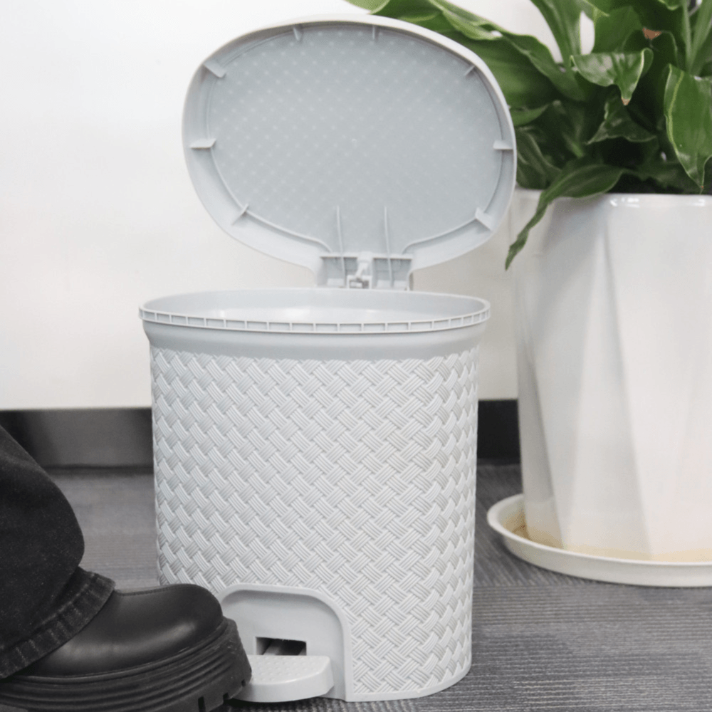 เปลี่ยนถังขยะแบบเดิมๆ ให้กลายเป็นของแต่งบ้านชิ้นงามด้วย KLEANZY ถังขยะขาเหยียบทรงกลมลายสาน ที่ผสมผสานฟังก์ชันการใช้งานและความสวยงามเข้าด้วยกันอย่างลงตัว ด้วยลวดลายสานที่ดูประณีตและโทนสีเทาคลาสสิก ช่วยยกระดับความดูดีให้กับทุกมุมภายในบ้าน