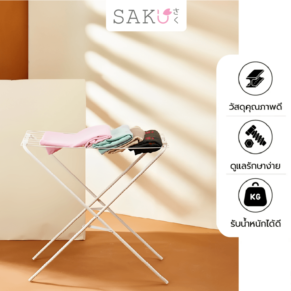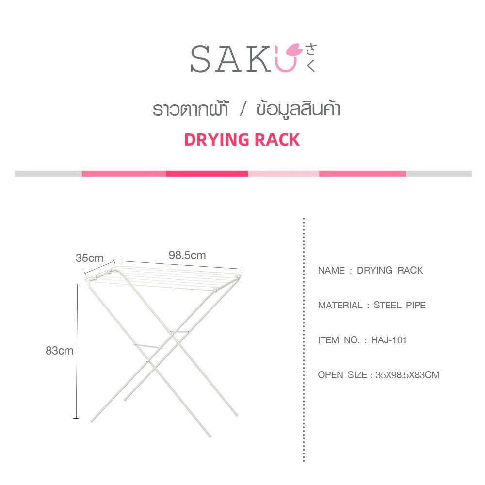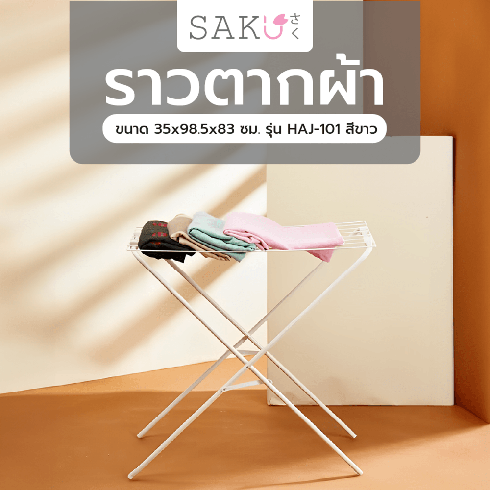 SAKU ราวตากผ้า ขนาด 35x98.5x83 ซม. รุ่น HAJ-101 สีขาว
