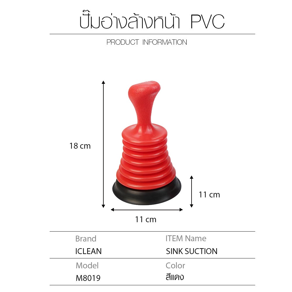 มีลักษณะเป็นถ้วยยางสีแดงที่ยืดหยุ่นได้ ต่ออยู่กับด้ามจับพลาสติกสั้นๆ ที่แข็งแรง เป็นเครื่องมือที่มีโครงสร้างเรียบง่าย แต่มีประสิทธิภาพสูงในการสร้างแรงดันน้ำ