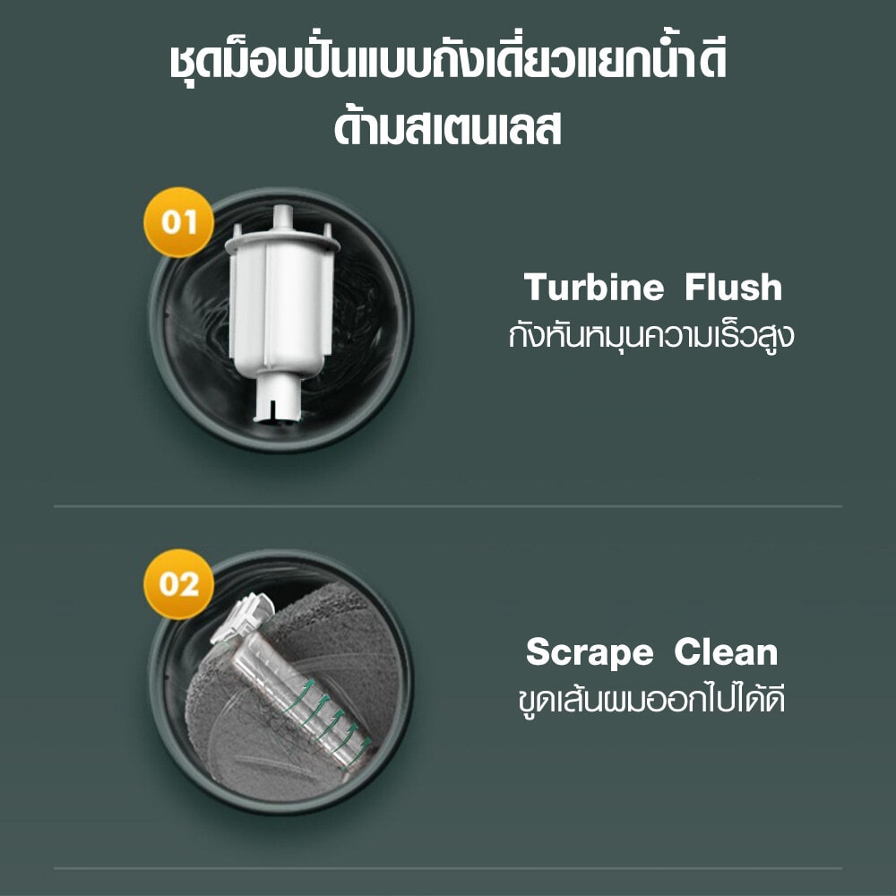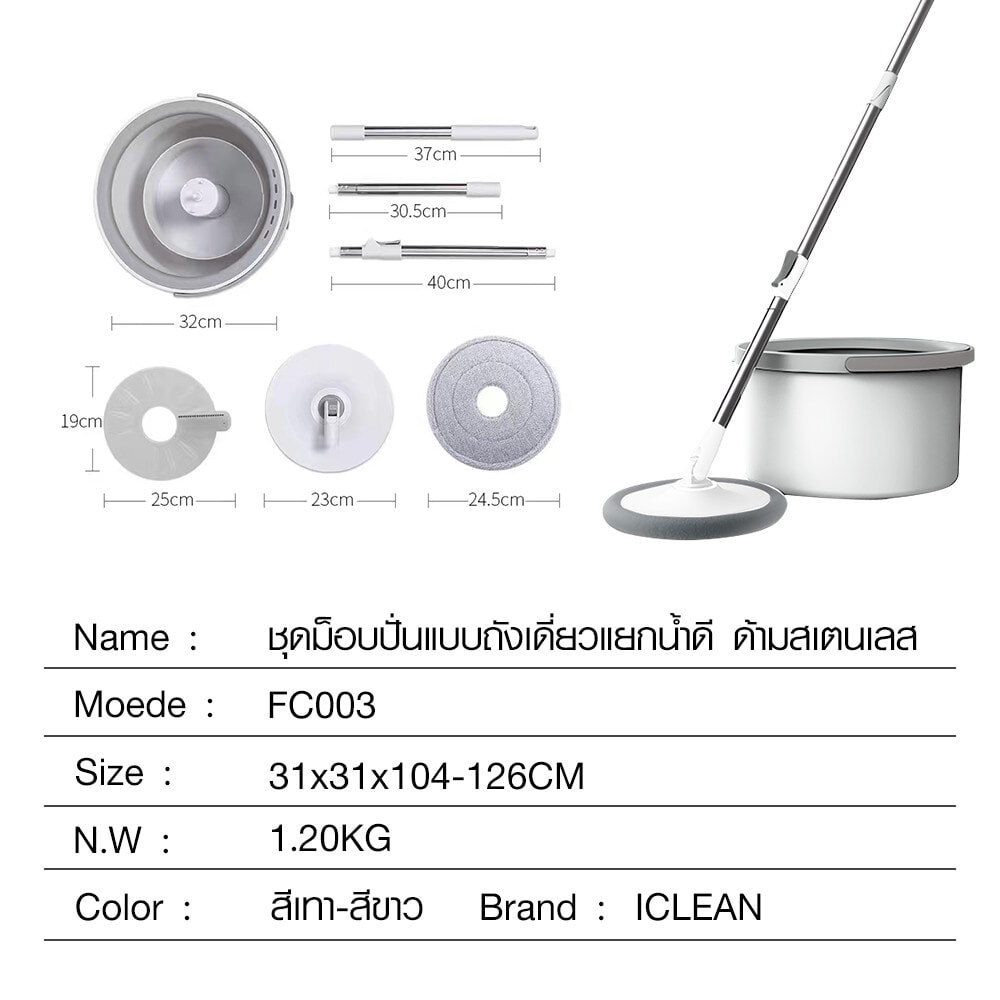 ถังปั่นวัสดุสเตนเลส: ตัวถังปั่นทำจากวัสดุสเตนเลสที่มีคุณภาพดี มีความแข็งแรง ทนทานต่อการใช้งาน และไม่เป็นสนิม ทำให้มีอายุการใช้งานที่ยาวนาน ระบบแยกน้ำดีน้ำเสีย: ตัวถังถูกออกแบบให้มีระบบแยกส่วนน้ำสะอาดและน้ำเสียออกจากกันอย่างชัดเจน ทำให้น้ำที่ใช้สำหรับซักผ้าม็อบและปั่นหมาดเป็นน้ำสะอาดอยู่เสมอ ช่วยให้การทำความสะอาดถูกสุขอนามัยมากขึ้น พื้นสะอาดกว่าเดิม เพราะไม่นำน้ำสกปรกกลับมาเช็ดซ้ำ
