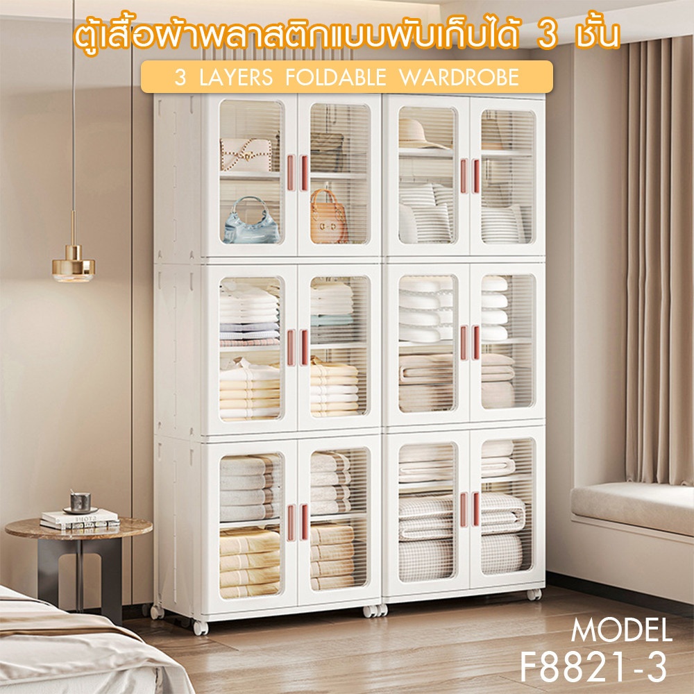 ตู้เสื้อผ้าพลาสติกแบบพับเก็บได้ 3 ชั้น GOME