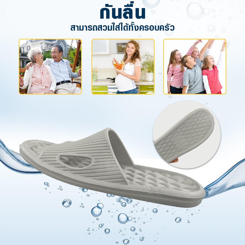 • พื้นรองเท้ากันลื่น : พื้นรองเท้าดีไซน์พิเศษ เพิ่มแรงยึดเกาะ ลดความเสี่ยงในการลื่นไถล