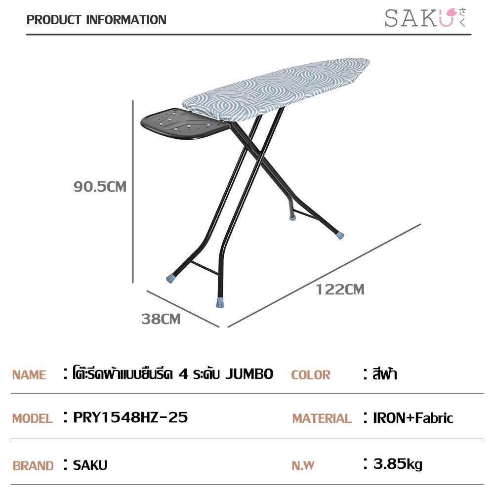 โต๊ะรีดผ้าไซส์จัมโบ้ที่จะเปลี่ยนงานรีดผ้าที่น่าเบื่อให้กลายเป็นเรื่องง่าย สะดวก และรวดเร็วยิ่งขึ้น ออกแบบมาเพื่อตอบโจทย์การใช้งานในครัวเรือนอย่างแท้จริง ด้วยฟังก์ชันที่ครบครันและโครงสร้างที่แข็งแรงทนทาน