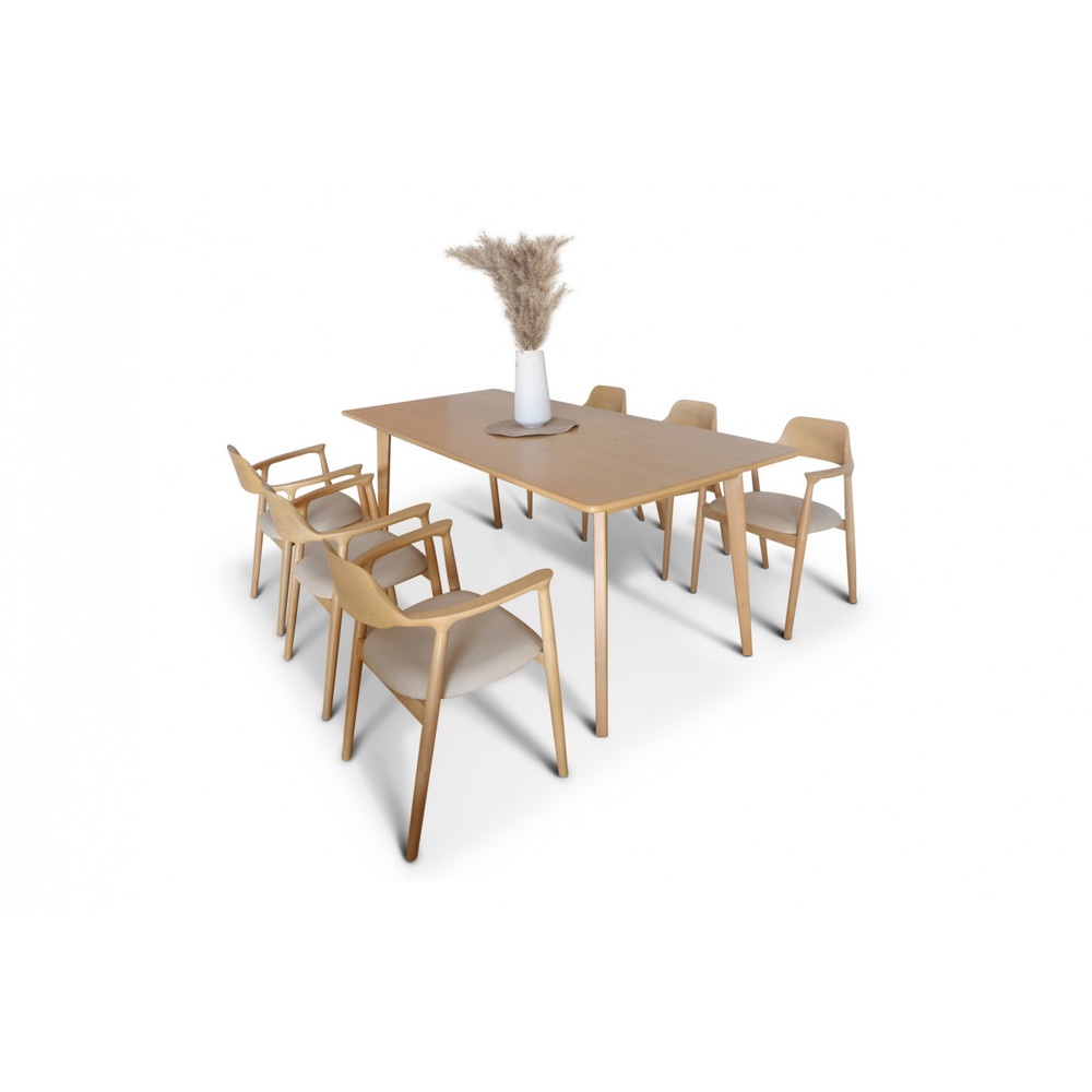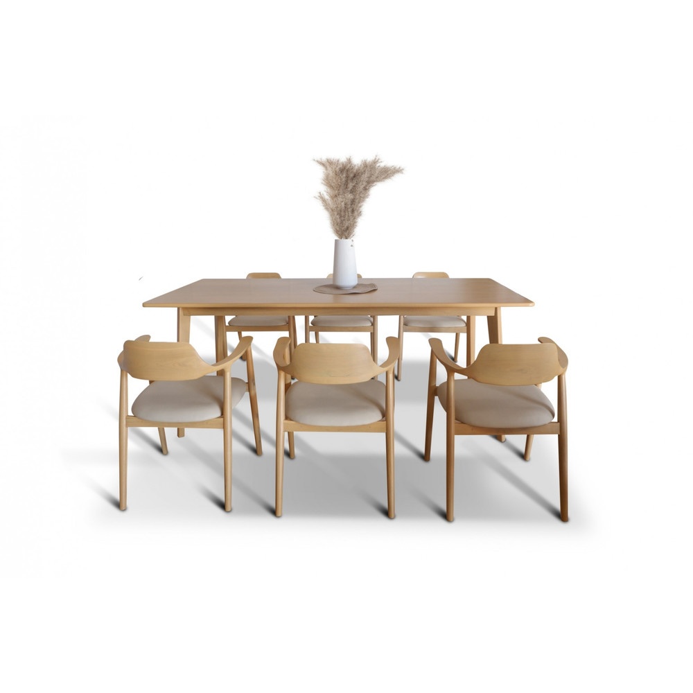 ชุดโต๊ะอาหารไม้สัก พร้อมเก้าอี้ 6 ตัว สีไม้ สไตล์มินิมอล เหมาะกับการตกแต่งบ้านหลากหลายสไตล์