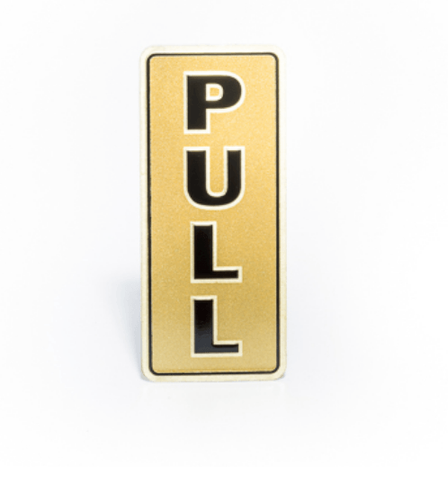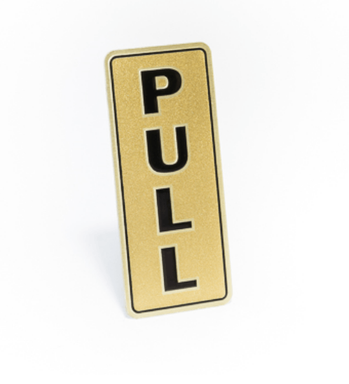 ป้ายอลูฯ SGB9101-89(PULL สีทอง ขนาด 3x7 ซม.)
