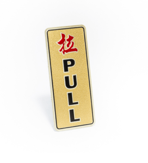ป้ายอลูฯ SGB9101-91(PULL สีทอง ขนาด 3x7 ซม.)