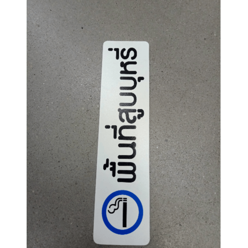 เป็นแผ่นพลาสติกสีขาวตัวอักษรสีดำพร้อมรูปภาพ