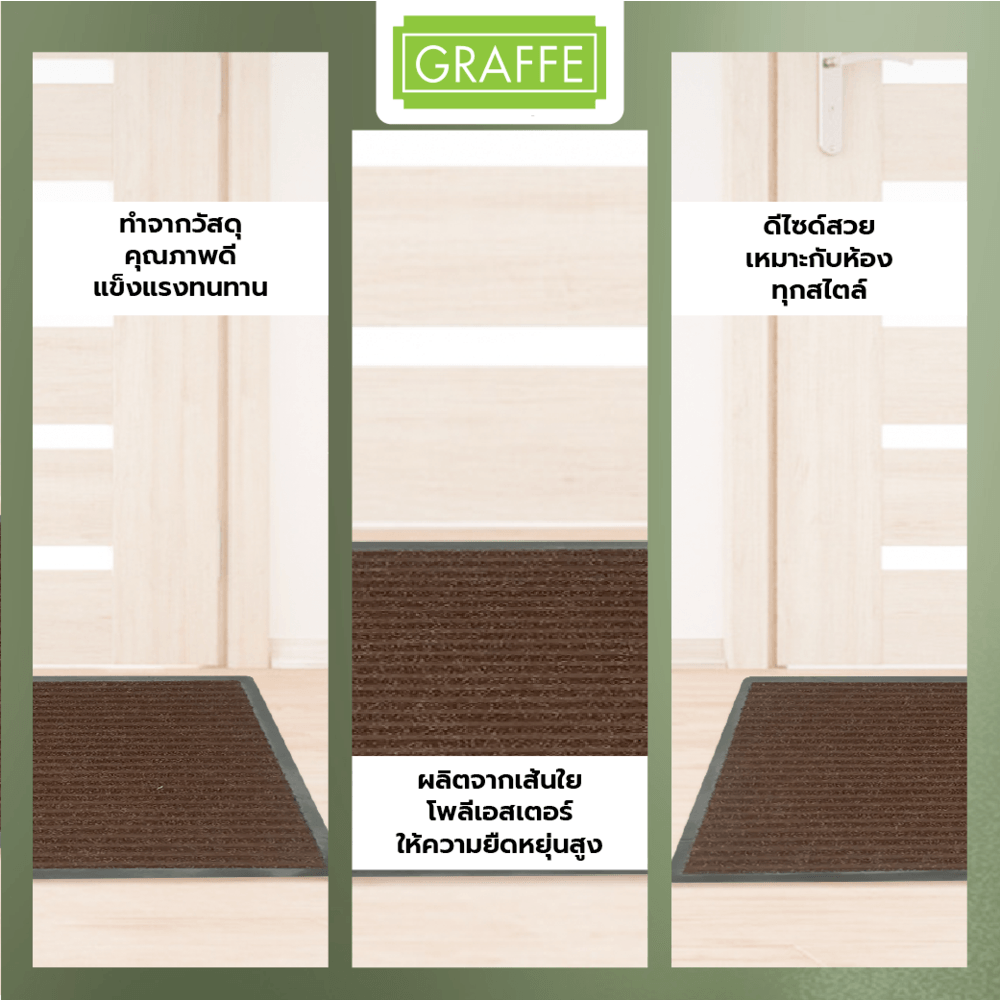 พรมดักฝุ่นกันลื่นดีไซน์สวย ทันสมัย ผลิตจากเส้นใยคุณภาพดี เนื้อพรมแน่น ไม่ยุ่ยหรือหลุดลุ่ยง่าย ให้ผิวสัมผัสที่นุ่มสบายเท้า ใช้งานได้อย่างยาวนาน ทำความสะอาดได้ง่าย พื้นพรมมาพร้อมแผ่นกันลื่นช่วยให้พรมยึดเกาะกับพื้นได้ดียิ่งขึ้น ใช้งานได้อเนกประสงค์ตามความต้องการของผู้ใช้งาน หรือใช้เป็นพรมหน้าห้องน้ำ หน้าประตู
