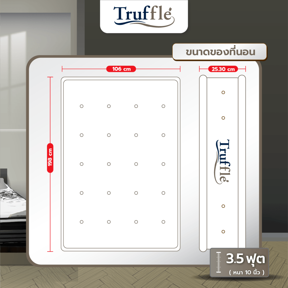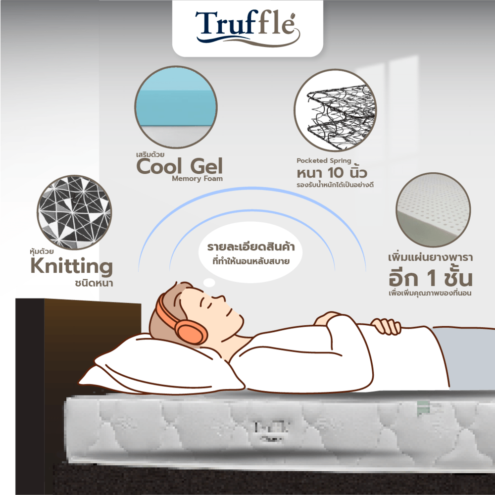 Truffle ที่นอน Pocket Spring เสริมเมมโมรี่โฟม รุ่น Belly ขนาด 3.5 ฟุต หนา 10 รับประกัน 15 ปี