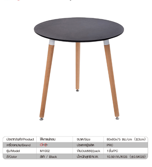 โต๊ะกาแฟกลม รุ่น M1002 80X75CM สีดำ