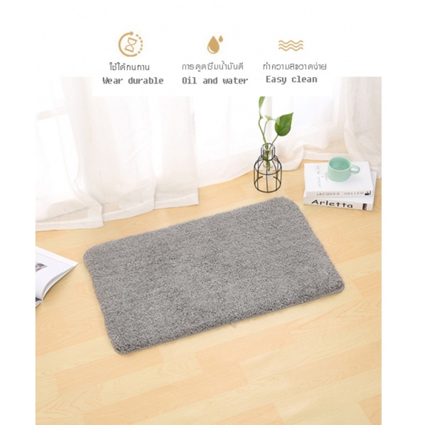 พรมเช็ดเท้าดีไซน์สวย ทันสมัย ผลิตจากเส้นใยไฟเบอร์คุณภาพดี ให้ผิวสัมผัสที่นุ่มสบายเท้า ใช้งานได้อย่างยาวนาน เส้นใยสามารถดูดซึมน้ำแล้วน้ำมันได้ดี ทำความสะอาดได้ง่าย พื้นพรมมาพร้อมแผ่นกันลื่นช่วยให้พรมยึดเกาะกับพื้นได้ดียิ่งขึ้น ใช้งานได้อเนกประสงค์ตามความต้องการของผู้ใช้งาน หรือใช้เป็นพรมหน้าห้องน้ำ ห้องนอน หน้าประตู