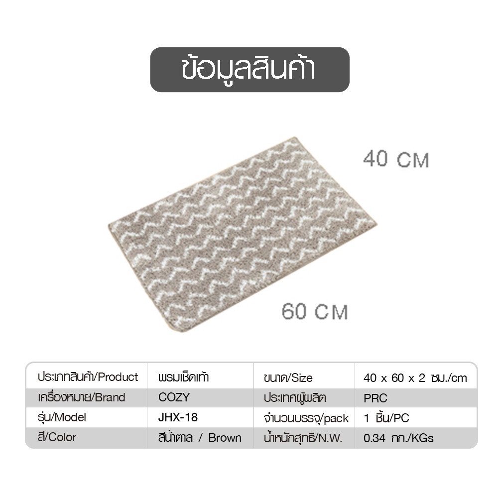 COZY พรมเช็ดเท้า 40×60×1.5cm. รุ่น JHX-18 สีน้ำตาล