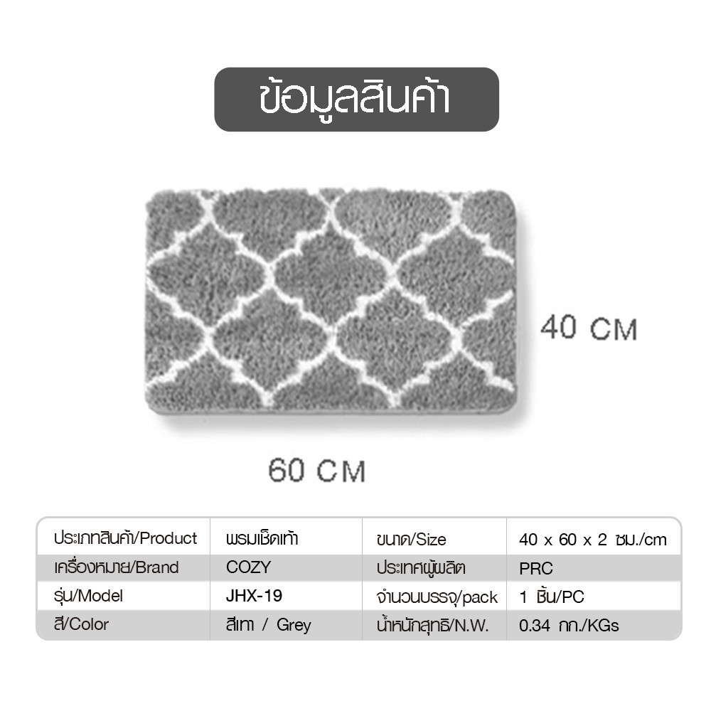 COZY พรมเช็ดเท้า 40×60×1.5cm. รุ่น JHX-19 สีเทา