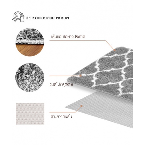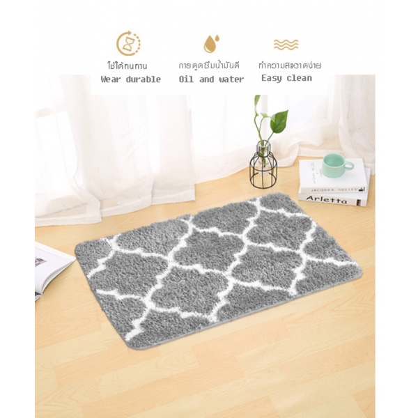 พรมเช็ดเท้าดีไซน์สวย ทันสมัย ผลิตจากเส้นใยไฟเบอร์คุณภาพดี ให้ผิวสัมผัสที่นุ่มสบายเท้า ใช้งานได้อย่างยาวนาน เส้นใยสามารถดูดซึมน้ำแล้วน้ำมันได้ดี ทำความสะอาดได้ง่าย พื้นพรมมาพร้อมแผ่นกันลื่นช่วยให้พรมยึดเกาะกับพื้นได้ดียิ่งขึ้น ใช้งานได้อเนกประสงค์ตามความต้องการของผู้ใช้งาน หรือใช้เป็นพรมหน้าห้องน้ำ ห้องนอน หน้าประตู