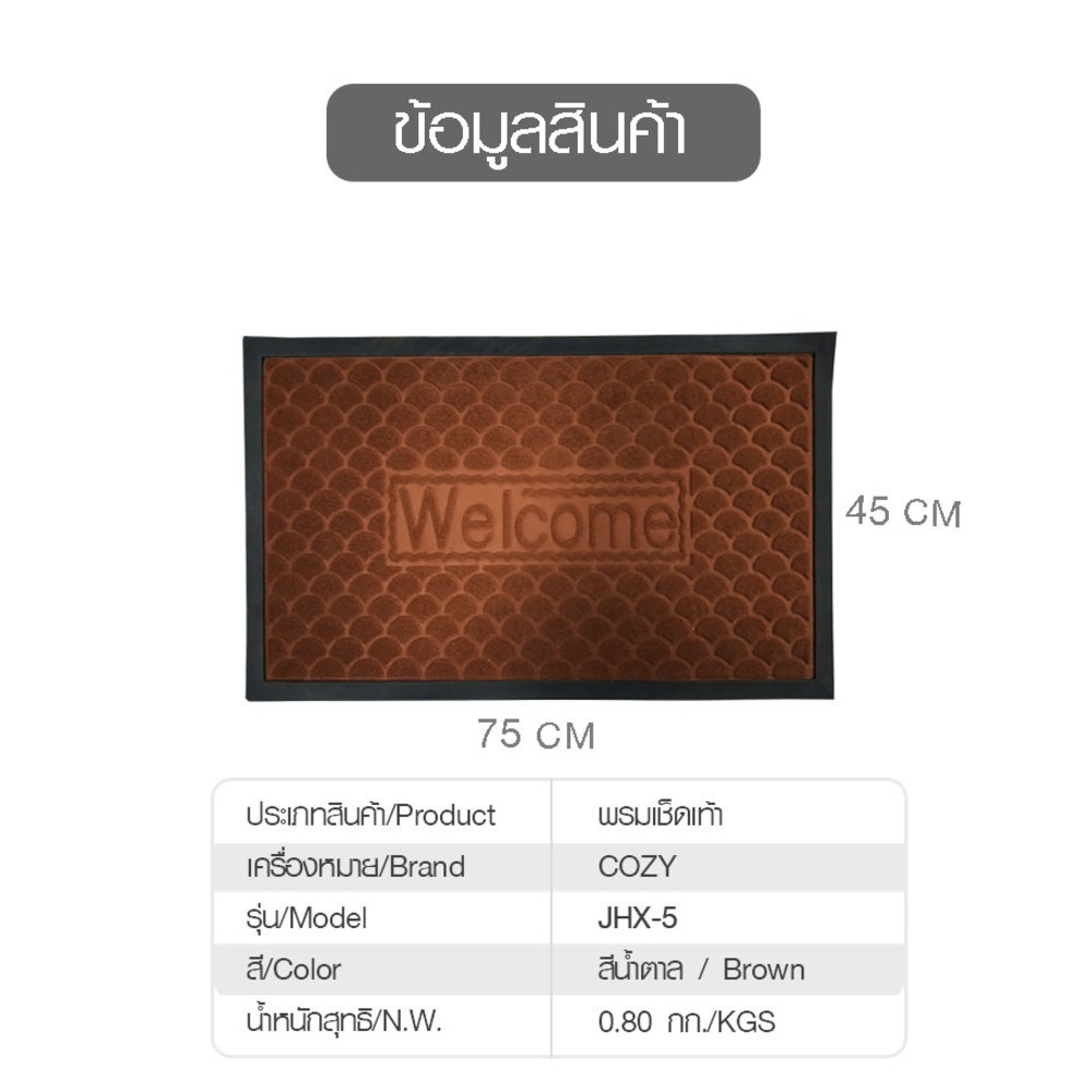 พรมเช็ดเท้า ขนาด 45×75×0.5 ซม. รุ่น JHX-5 สีน้ำตาล