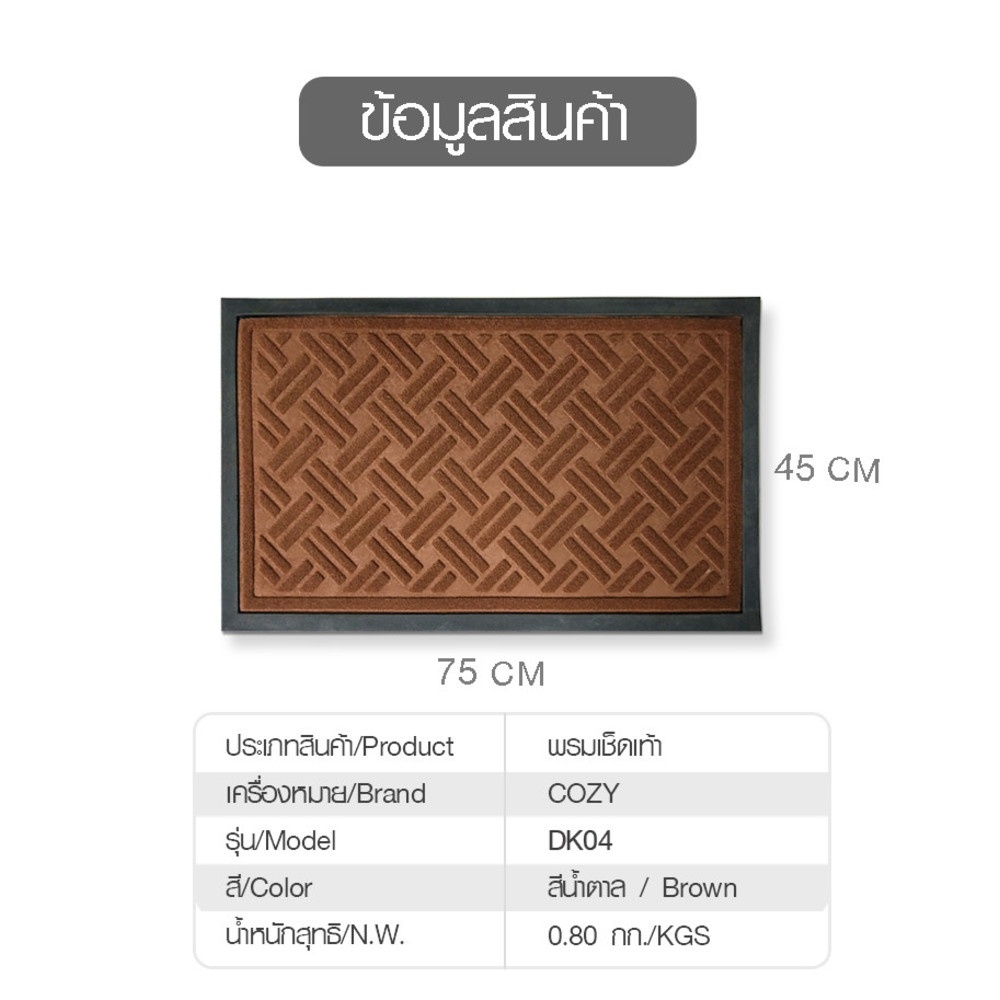 พรมเช็ดเท้า ขนาด 45×75×0.5 ซม. รุ่น DK04 สีน้ำตาล