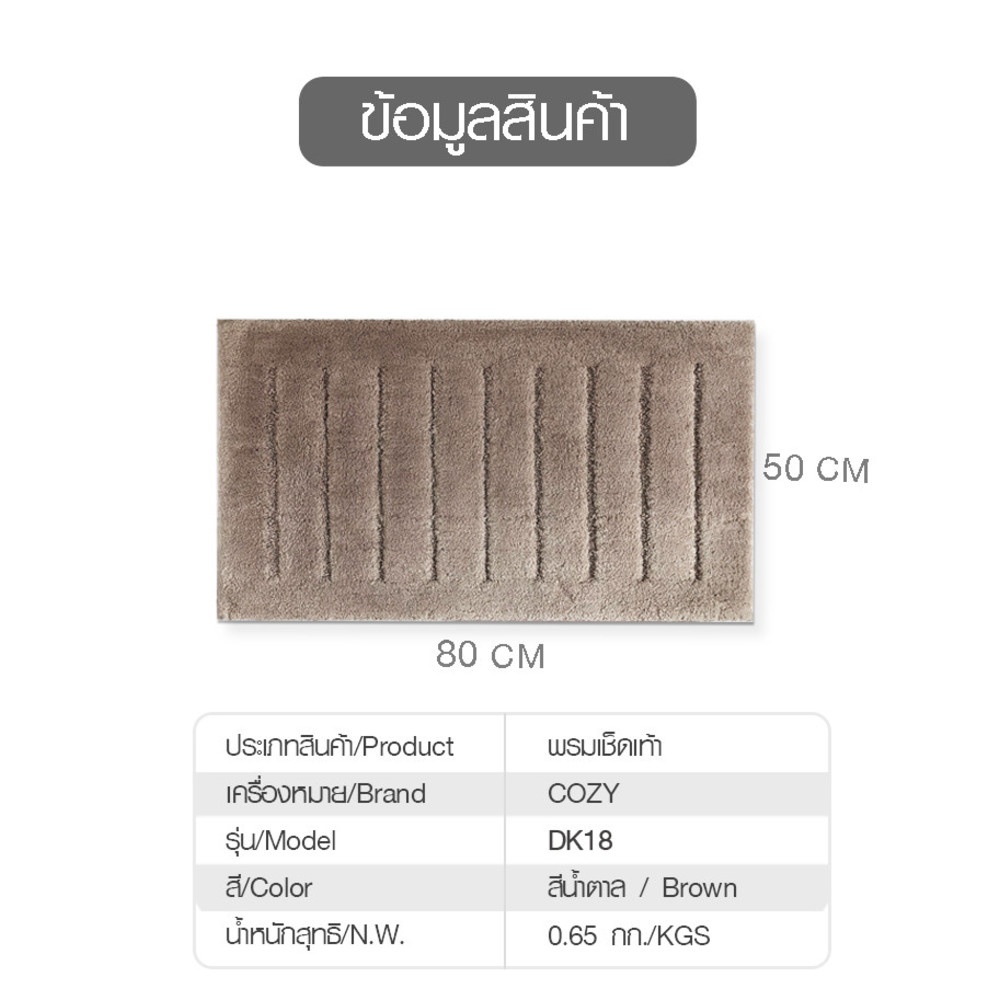 พรมเช็ดเท้า 50×80×1.5 ซม. รุ่น DK18 สีน้ำตาล