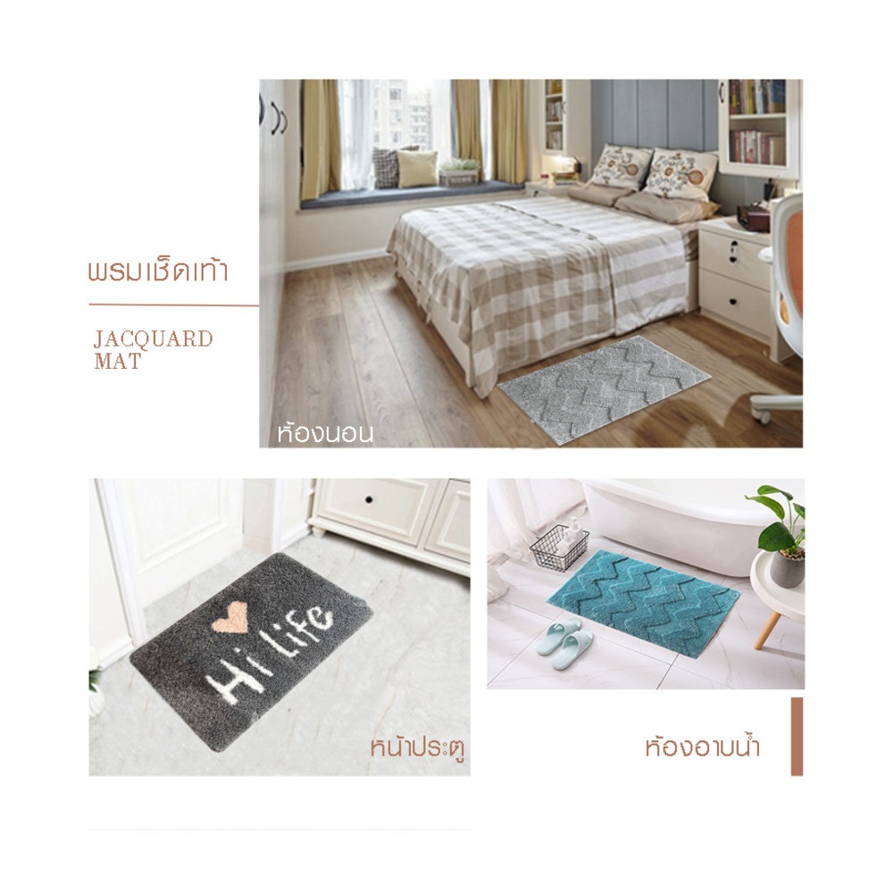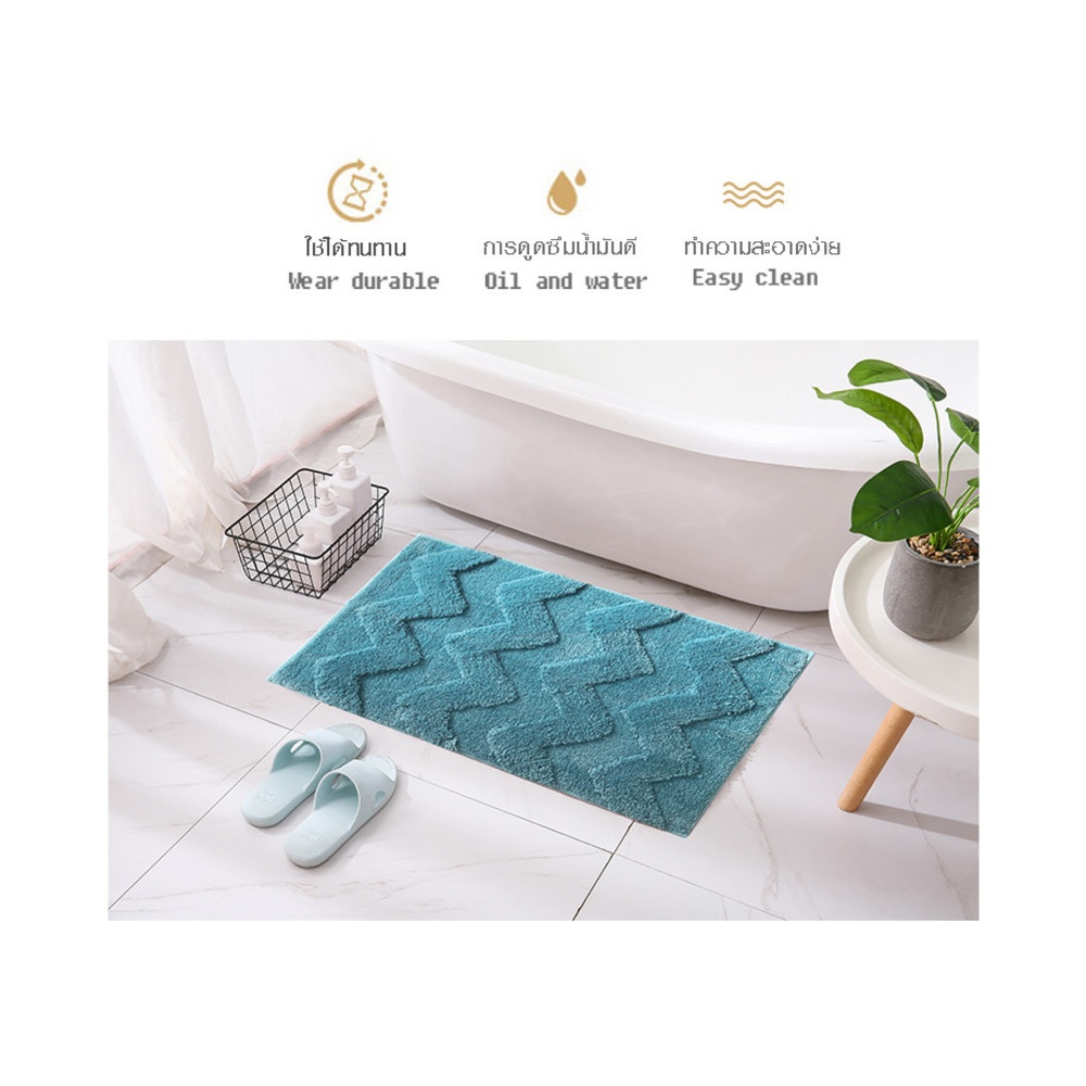 พรมเช็ดเท้าดีไซน์สวย ทันสมัย ผลิตจากเส้นใยไฟเบอร์คุณภาพดี ให้ผิวสัมผัสที่นุ่มสบายเท้า ใช้งานได้อย่างยาวนาน เส้นใยสามารถดูดซึมน้ำแล้วน้ำมันได้ดี ทำความสะอาดได้ง่าย พื้นพรมมาพร้อมแผ่นกันลื่นช่วยให้พรมยึดเกาะกับพื้นได้ดียิ่งขึ้น ใช้งานได้อเนกประสงค์ตามความต้องการของผู้ใช้งาน หรือใช้เป็นพรมหน้าห้องน้ำ ห้องนอน หน้าประตู