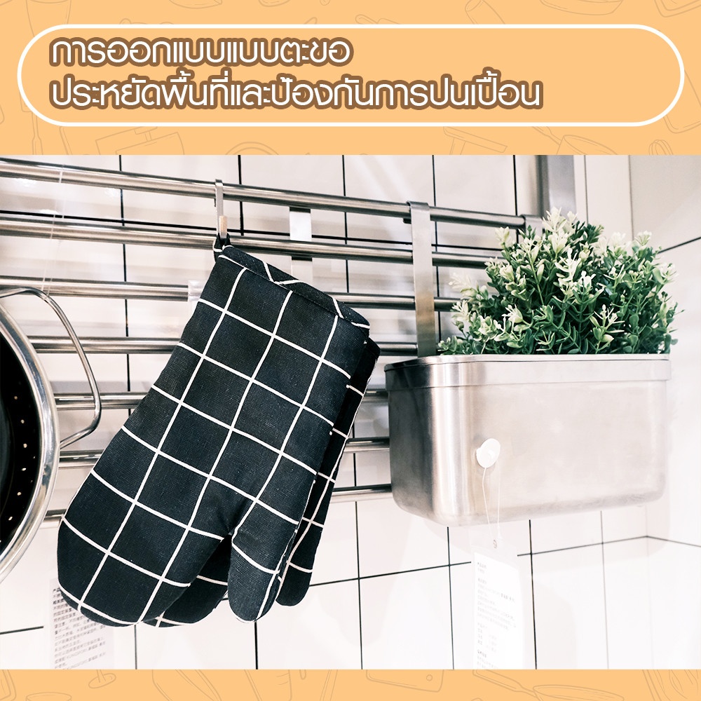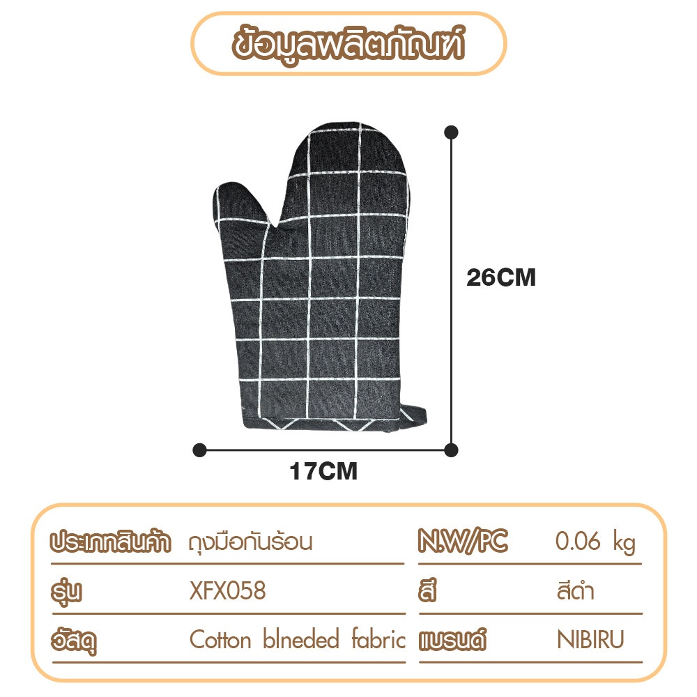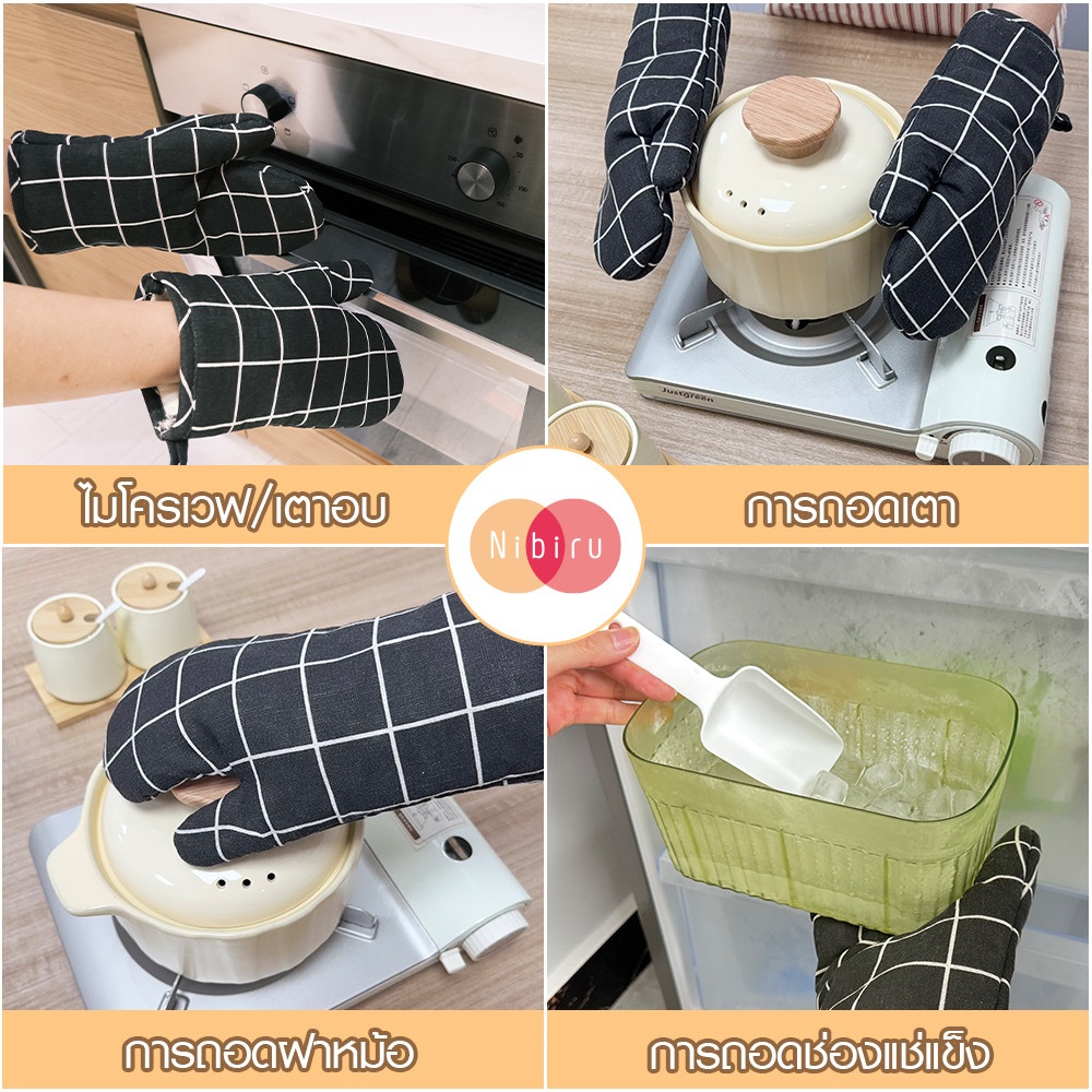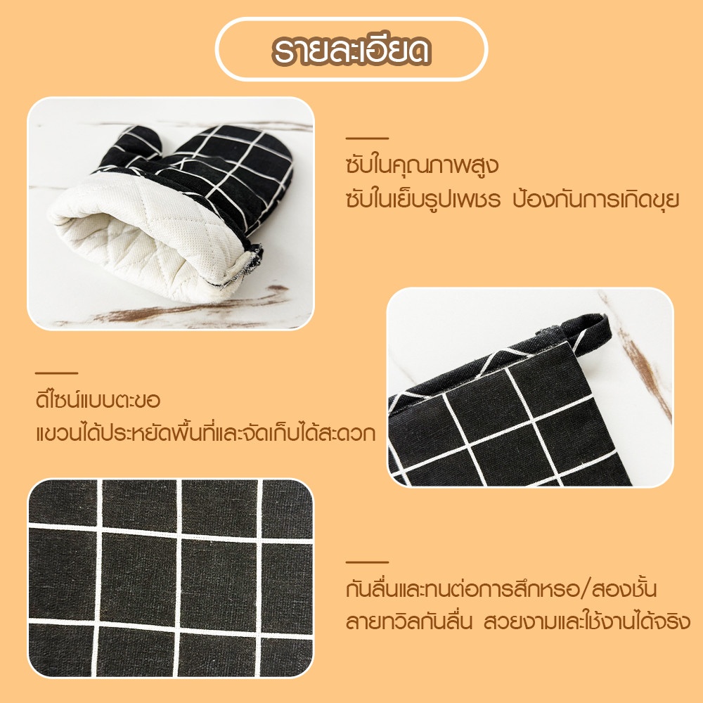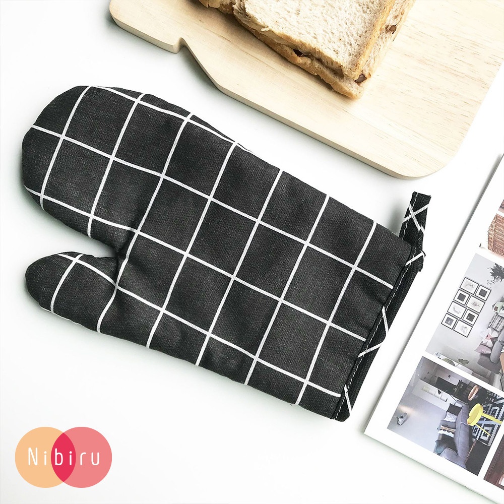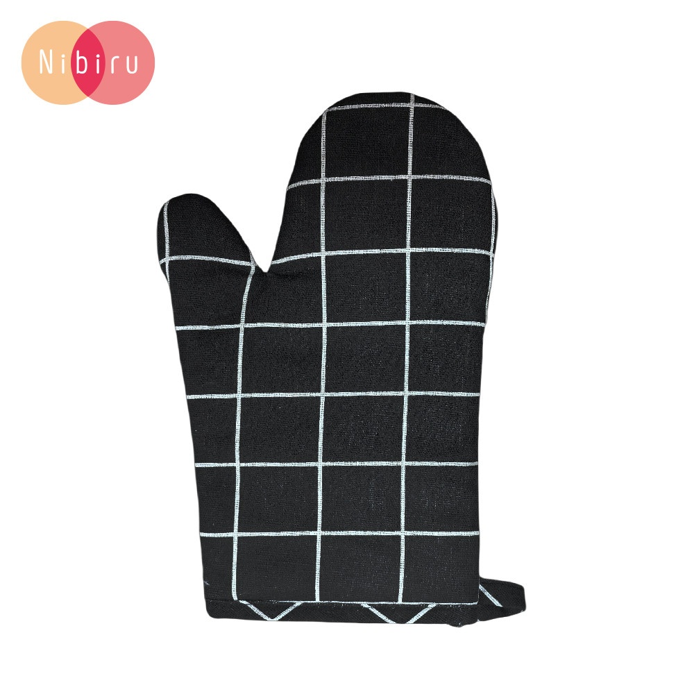 - ถุงมือกันร้อน ลายตาราง สี ดำ / Oven Glove