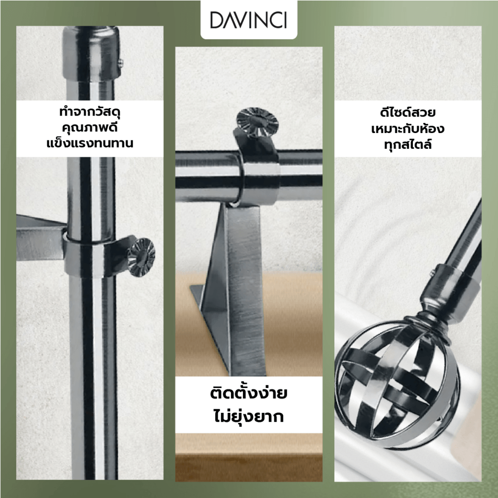 DAVINCI ชุดราวผ้าม่านสำเร็จรูป 3.5 เมตร 22 มม. 22FML-005 สีเงิน
