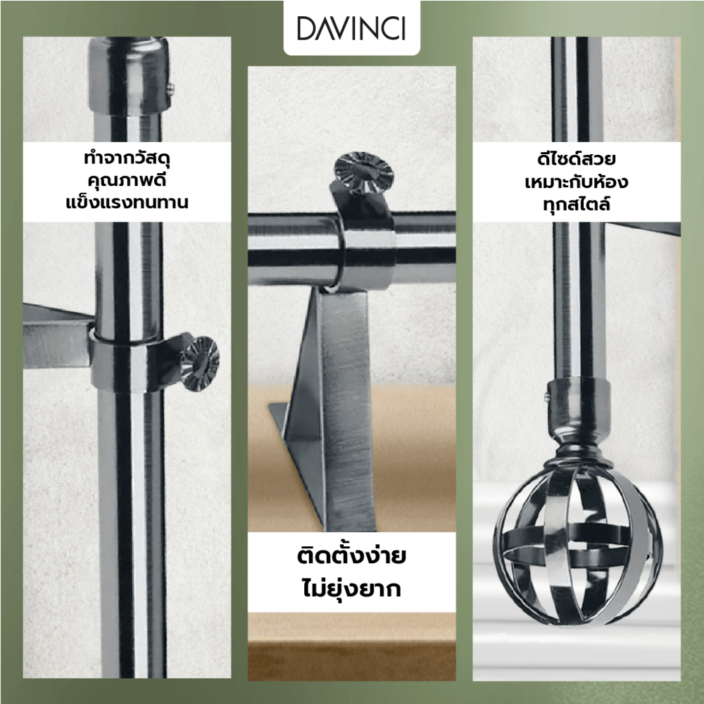 DAVINCI ชุดราวผ้าม่านสำเร็จรูป 3.5 เมตร 25 มม. 25FML-005 สีเงิน