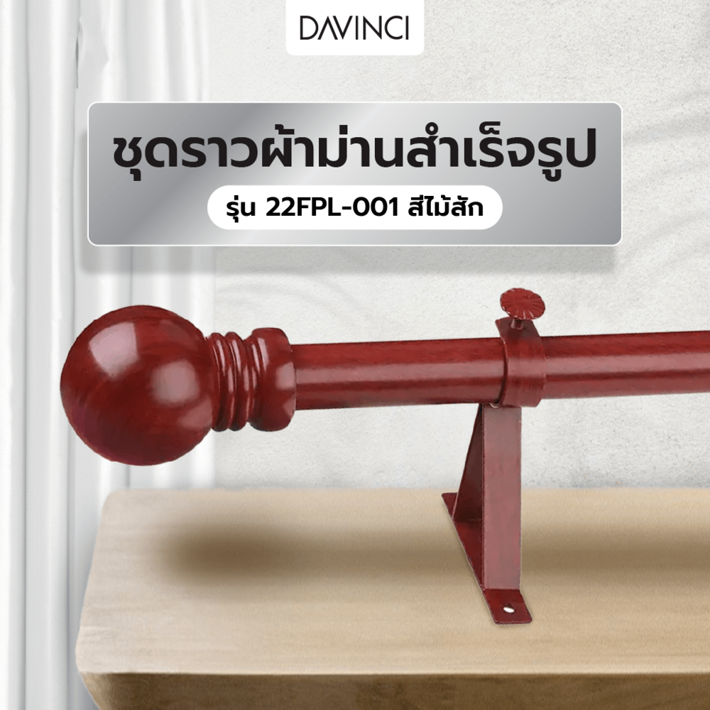 DAVINCI ชุดราวผ้าม่านสำเร็จรูป 2 เมตร 22มม. 22FPL-001 สีไม้สัก