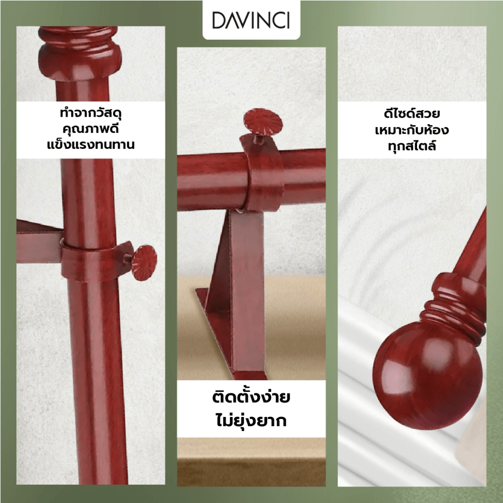 DAVINCI ชุดราวผ้าม่านสำเร็จรูป 2 เมตร 25มม. 25FPL-001 สีไม้สัก