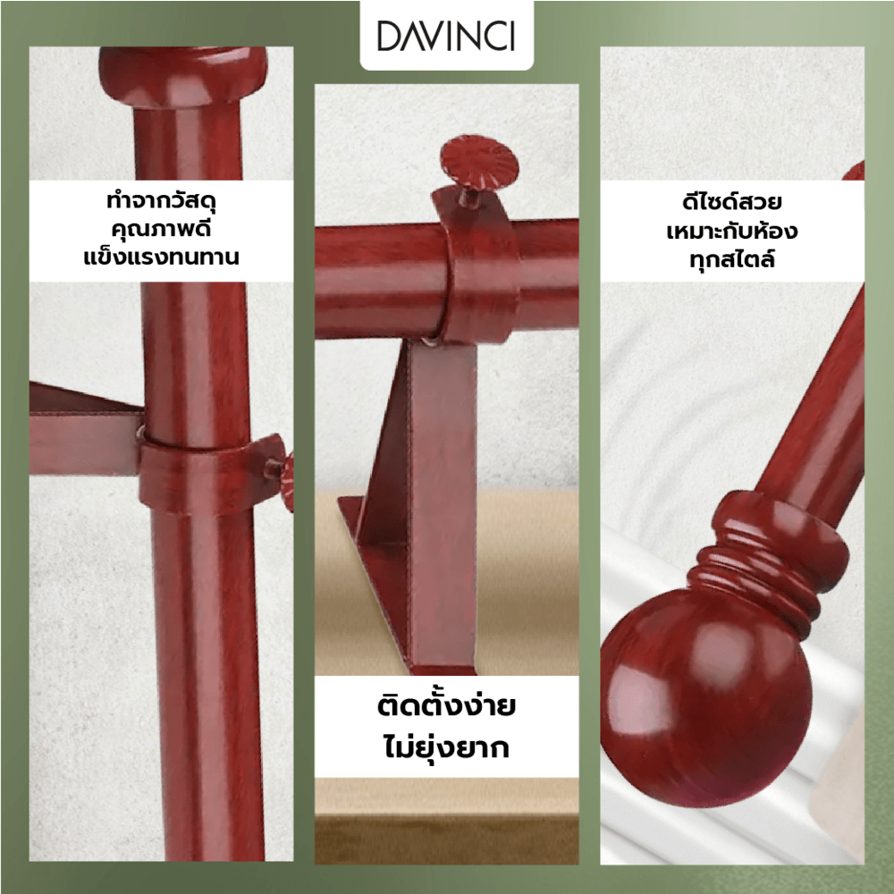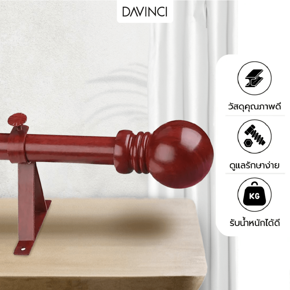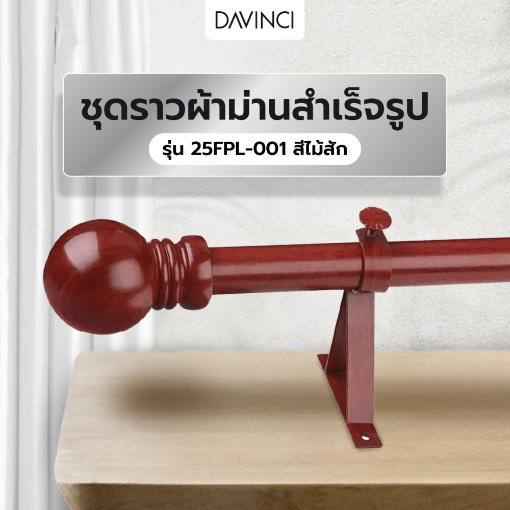 DAVINCI ชุดราวผ้าม่านสำเร็จรูป 2.5 เมตร 25มม. 25FPL-001 สีไม้สัก