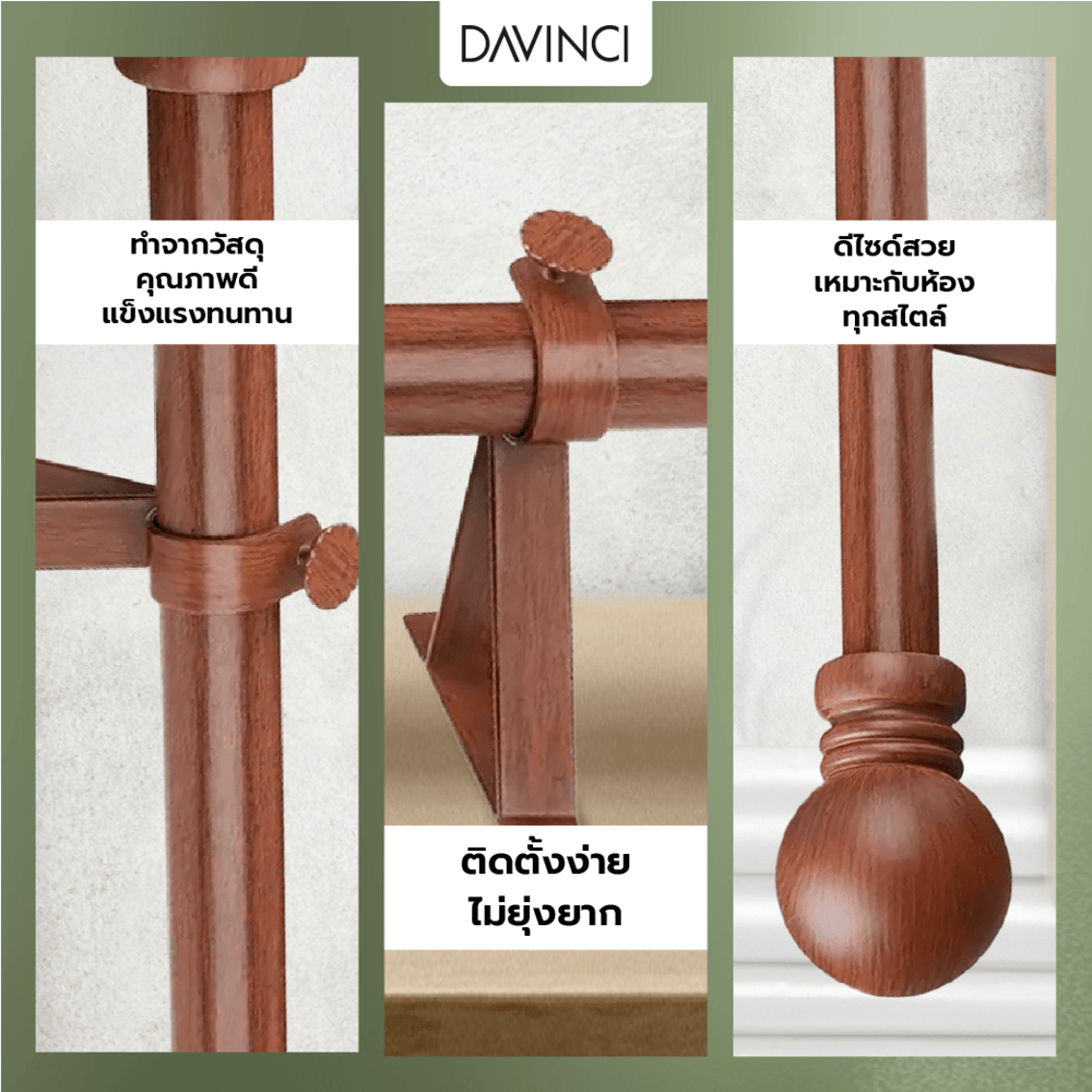 DAVINCI ชุดราวผ้าม่านสำเร็จรูป 2 เมตร 25มม. 25FPL-001 สีไม้โอ๊ค