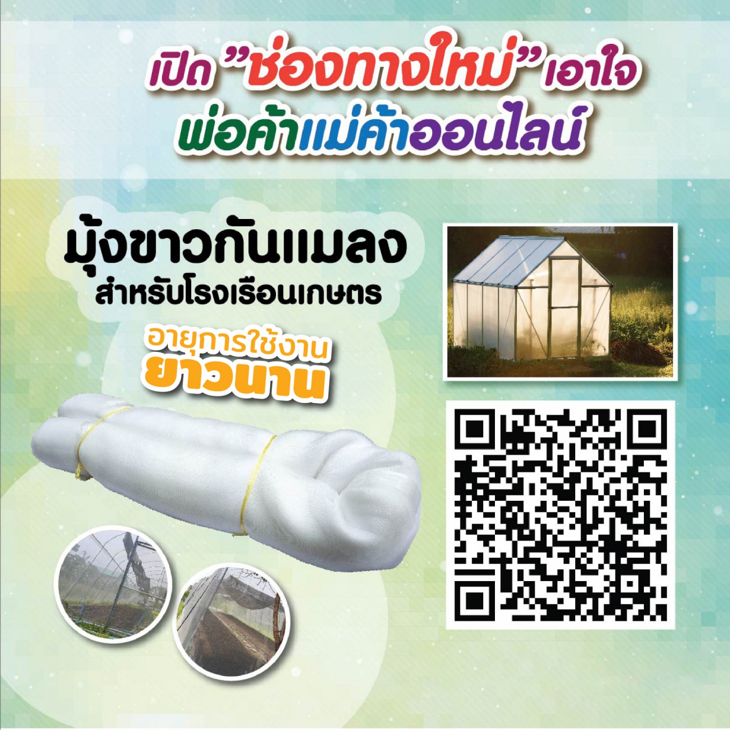 เหมาะสำหรับใช้ทำโรงเรือนเพื่อป้องกันแมลงศัตรูพืชที่จะเข้ามากัดกินพืชผล เข้ามาวางไข่ทำให้เกิดหนอนซึ่งเป็นอันตรายต่อพืชผลที่ทำการปลูกได้, ป้องกันยุงและแมลงสำหรับสัตว์เลี้ยงในคอก