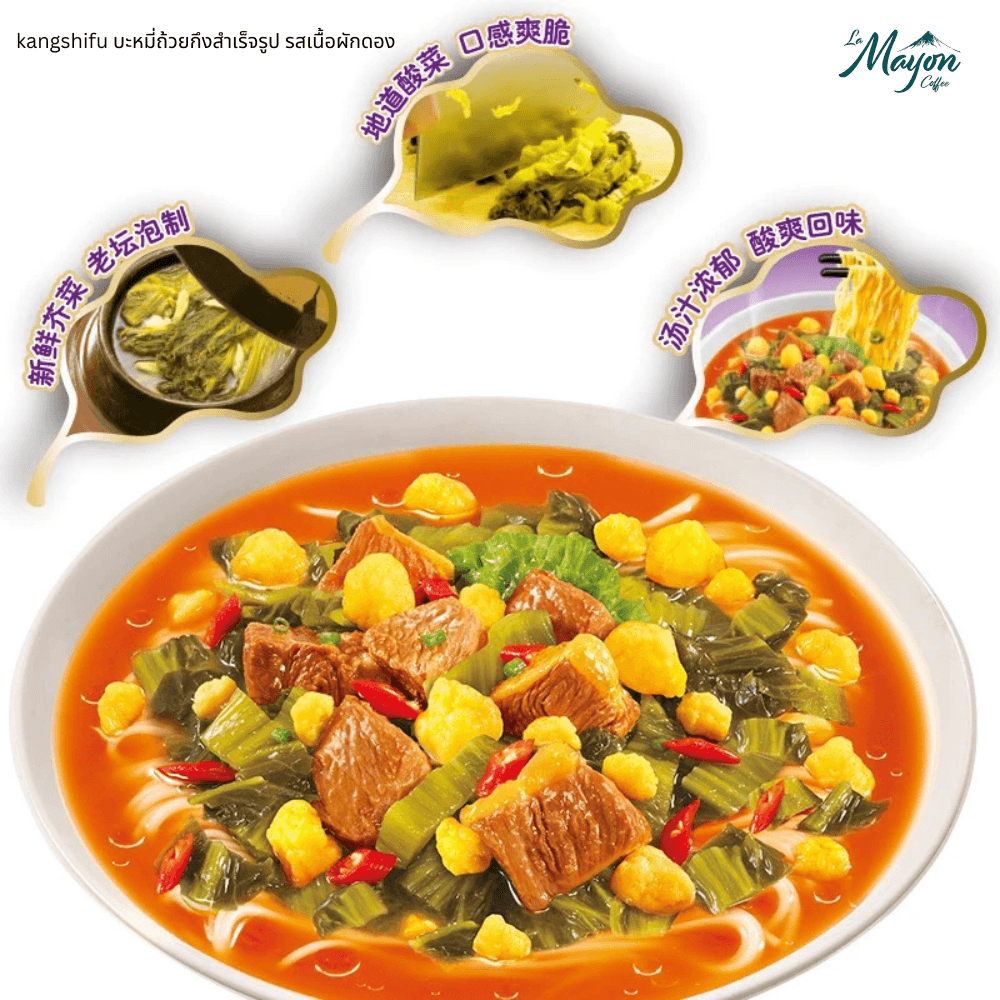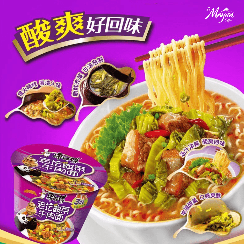 บะหมี่ถ้วย Kangshifu รสเนื้อผักดอง เป็นตัวเลือกที่อร่อยและสะดวกสำหรับคนที่ต้องการอาหารพร้อมทานที่มีรสชาติแตกต่างและเข้มข้น! 😊
