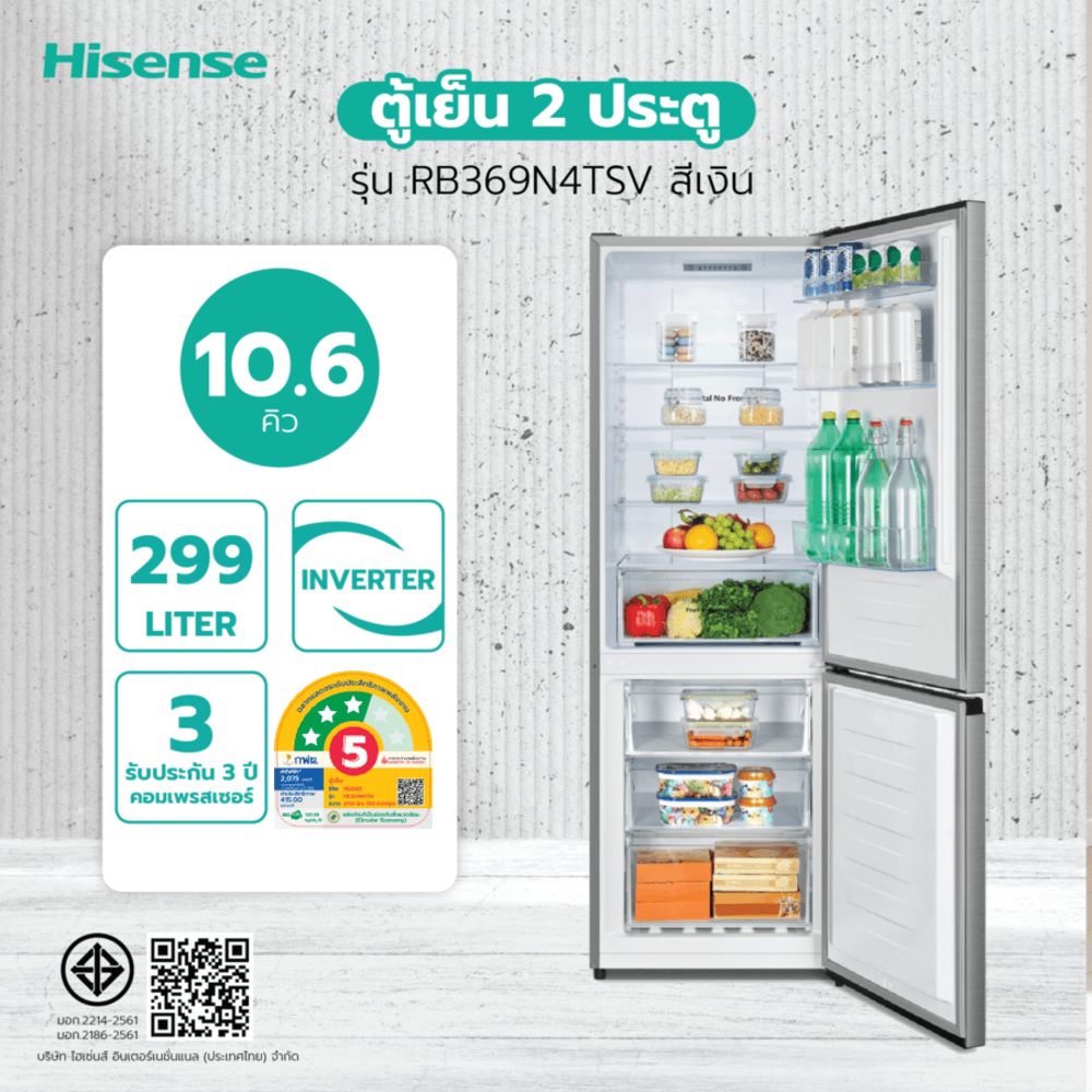 ตู้เย็น 2 ประตู 10.6 คิว รุ่น RB369N4TSV สีเงิน