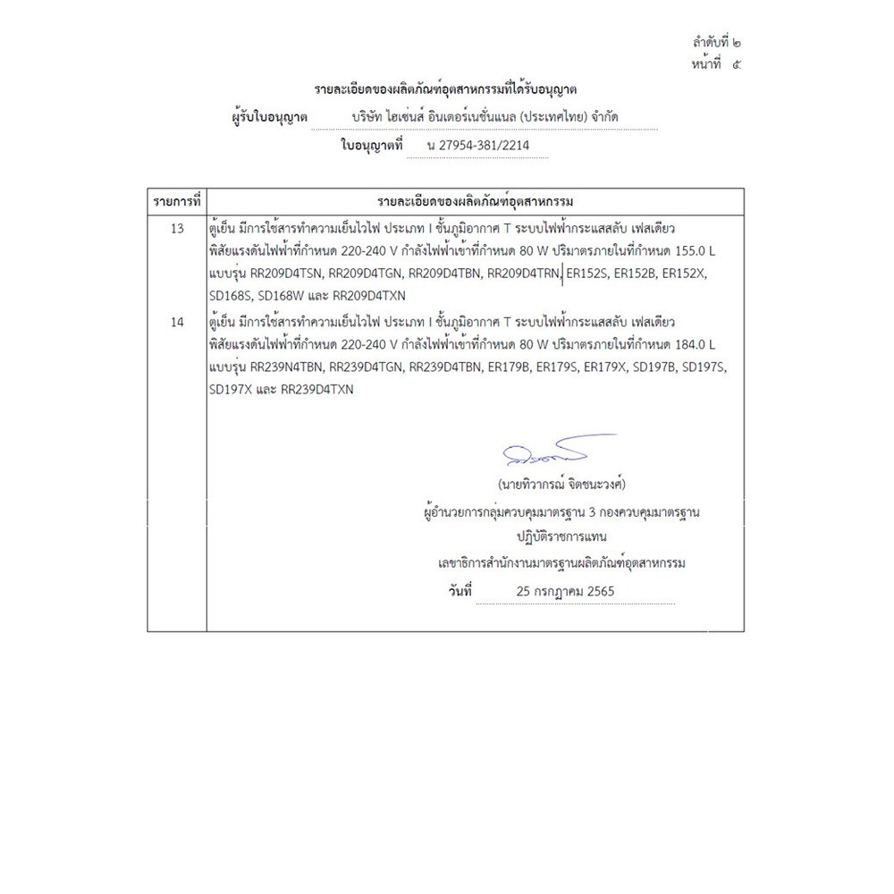 | รุ่น | RR209D4TGN 5.5 REF 1 Door |