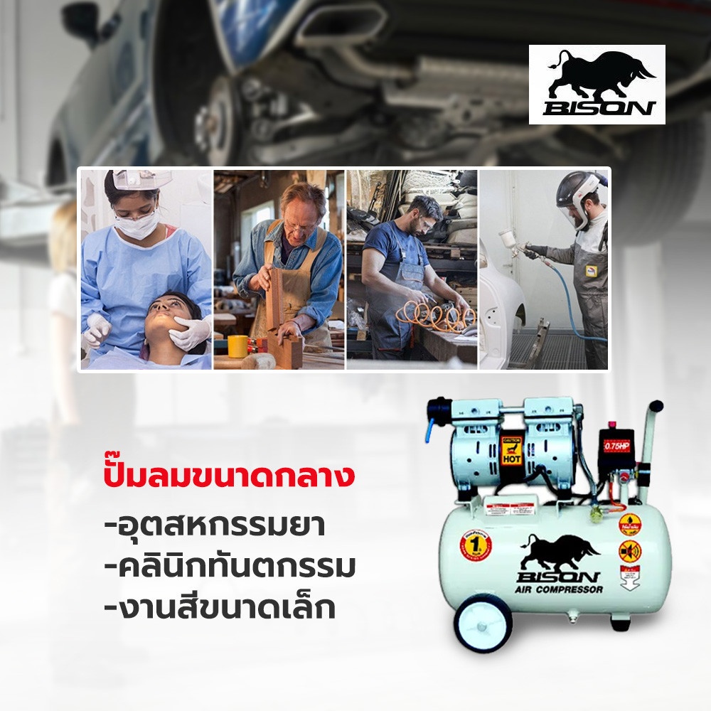 หัวปั๊มออกแบบพิเศษ ให้เสียงเงียบ 55-60 dB เป็นปั้มลมชนิดขับตรง แบบไร้น้ำมัน เสียงเงียบ น้ำหนักเบาเหมาะกับงานเคลื่อนย้าย บำรุงรักษาง่าย ลดค่าใช้จ่ายเรื่องน้ำมันหล่อลื่นเพราะไม่ต้องใช้น้ำมัน ให้อายุการใช้งานยาวนานกว่า ผลิตลมต่อเนื่องไม่ใช้น้ำมันในการหล่อลื่น เหมาะสำหรับ อุตสาหกรรมอาหารที่ต้องการมาตรฐาน ซึ่งต้องปราศจากอันตรายจาก สารปนเปื้อน , อุตสหกรรมยา , คลินิกทันตกรรม , งานสีขนาดเล็ก(งานโมเดล) และท่านที่ต้องการความเงียบ อัตตราการผลิตลมที่เร็ว