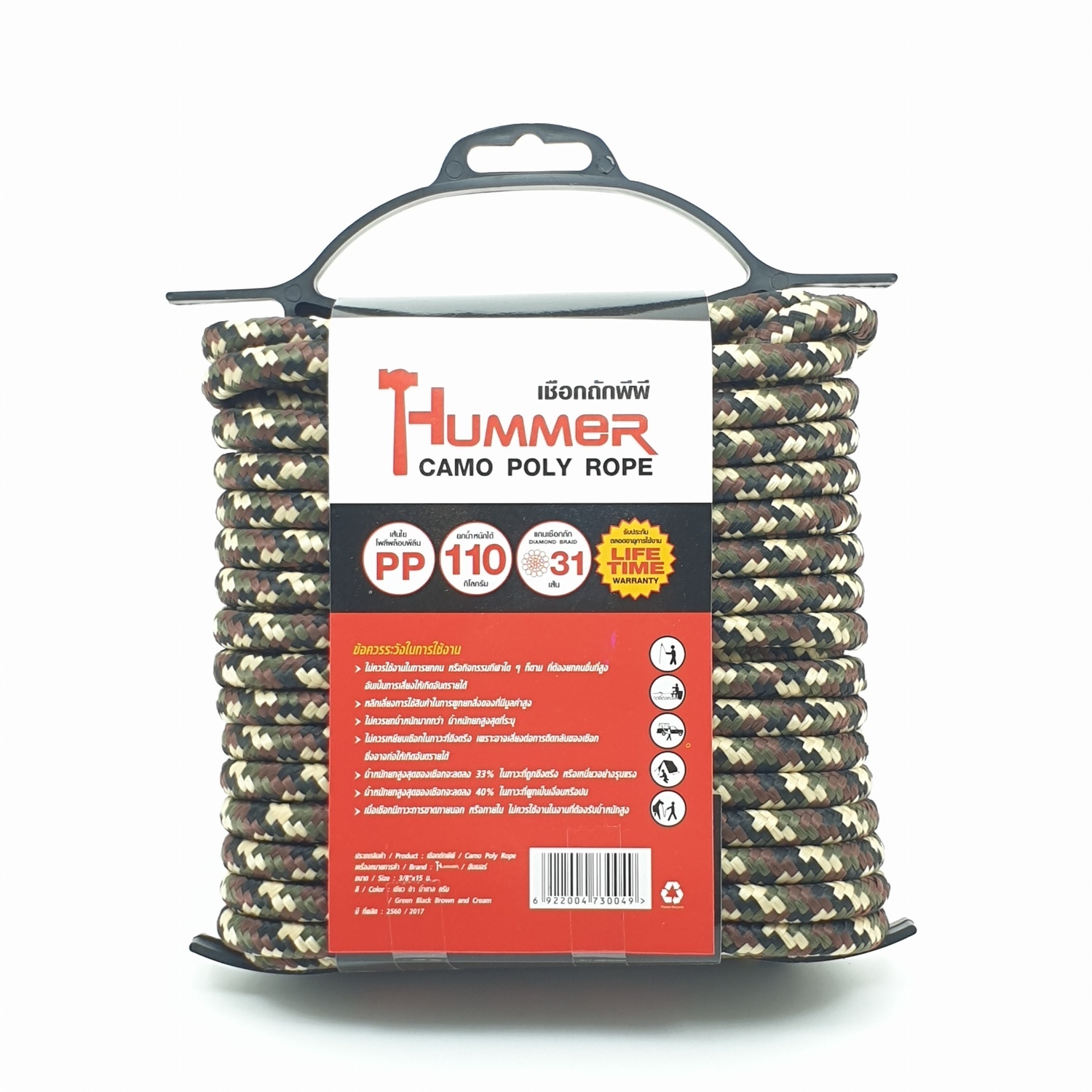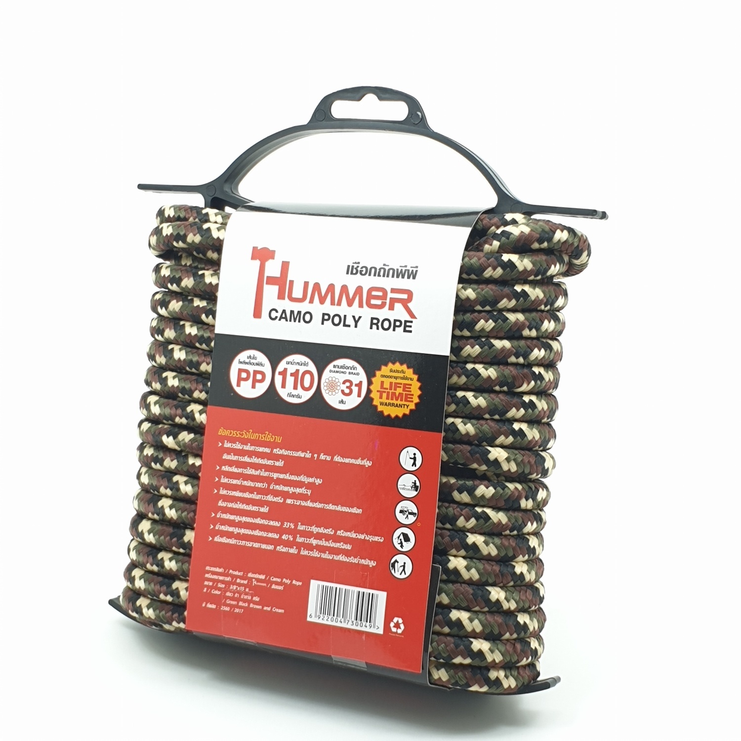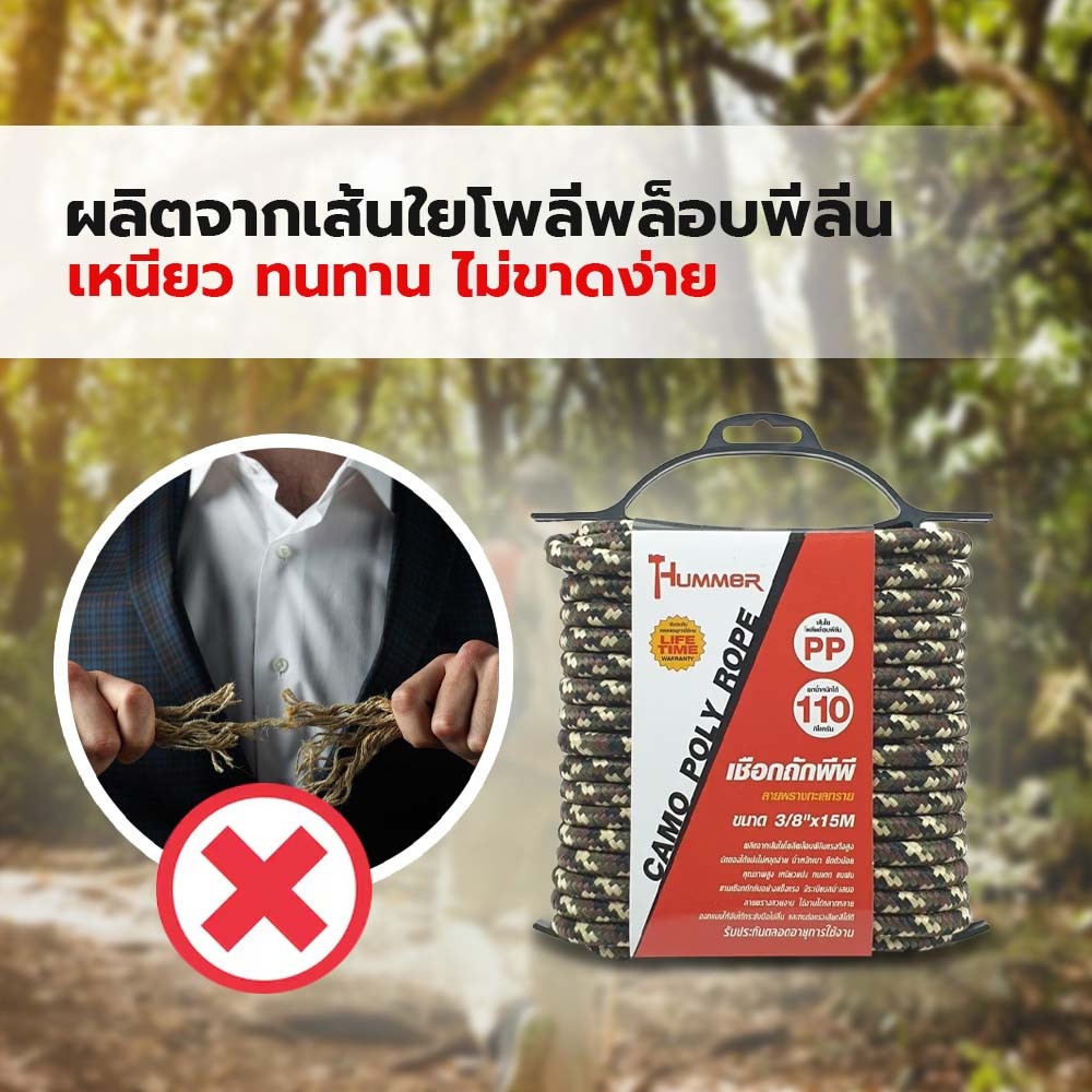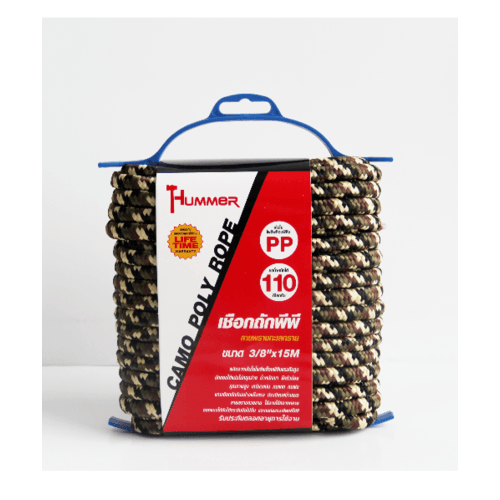 แกนเชือกถักกันอย่างแข็งแรง มีระเบียบสม่ำเสมอ ยืดตัวน้อย น้ำหนักเบา ลายพรางสวยงาม เหมาะสำหรับการตั้งแคมป์, ทะเล, อเนกประสงค์ ทนแดด ทนฝน