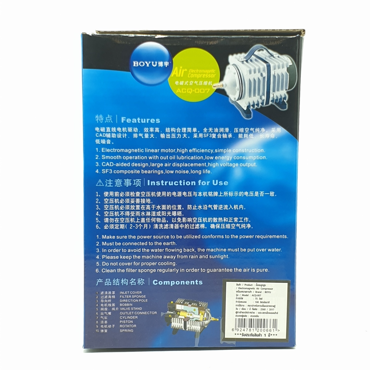 1. มีกำลังมาก สามารถปั๊มอากาศส่งไปได้ไกลหรือลงน้ำได้ลึก และกำลังลมสม่ำเสมอ