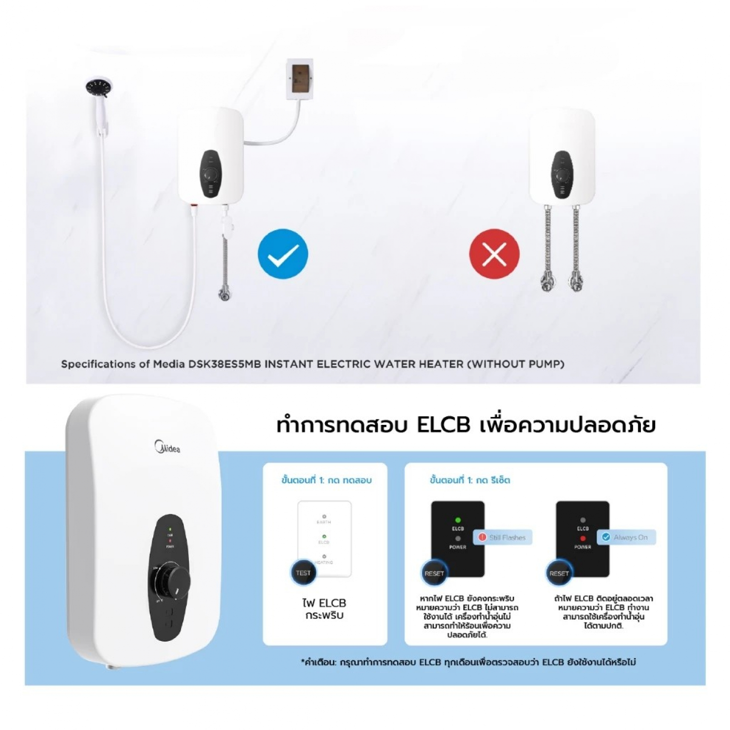 - มีระบบ ELCB ตัดการทำงานเมื่อมีกระแสไฟรั่วและระบบป้องกันหม้อต้มน้ำแห้ง