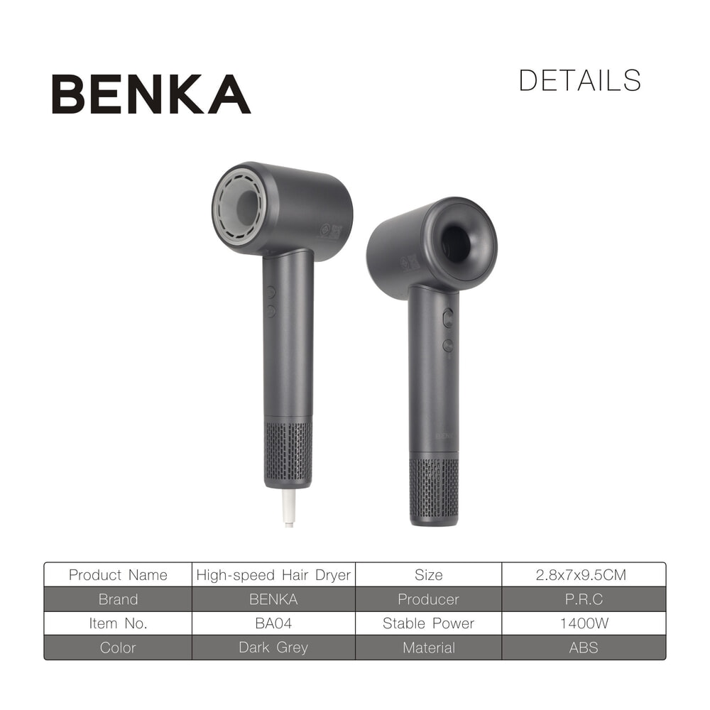 BENKA ไดร์เป่าผม 1400W รุ่น BA04 สีดำ-เทา