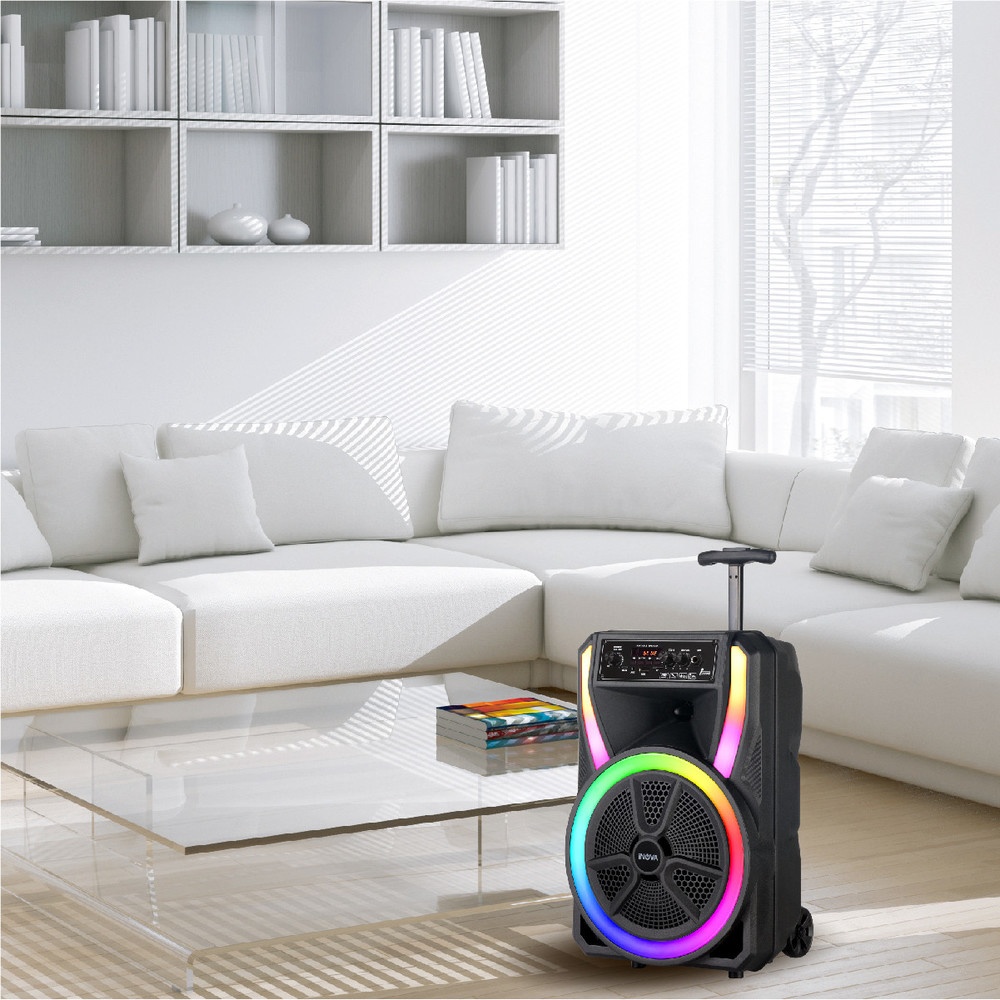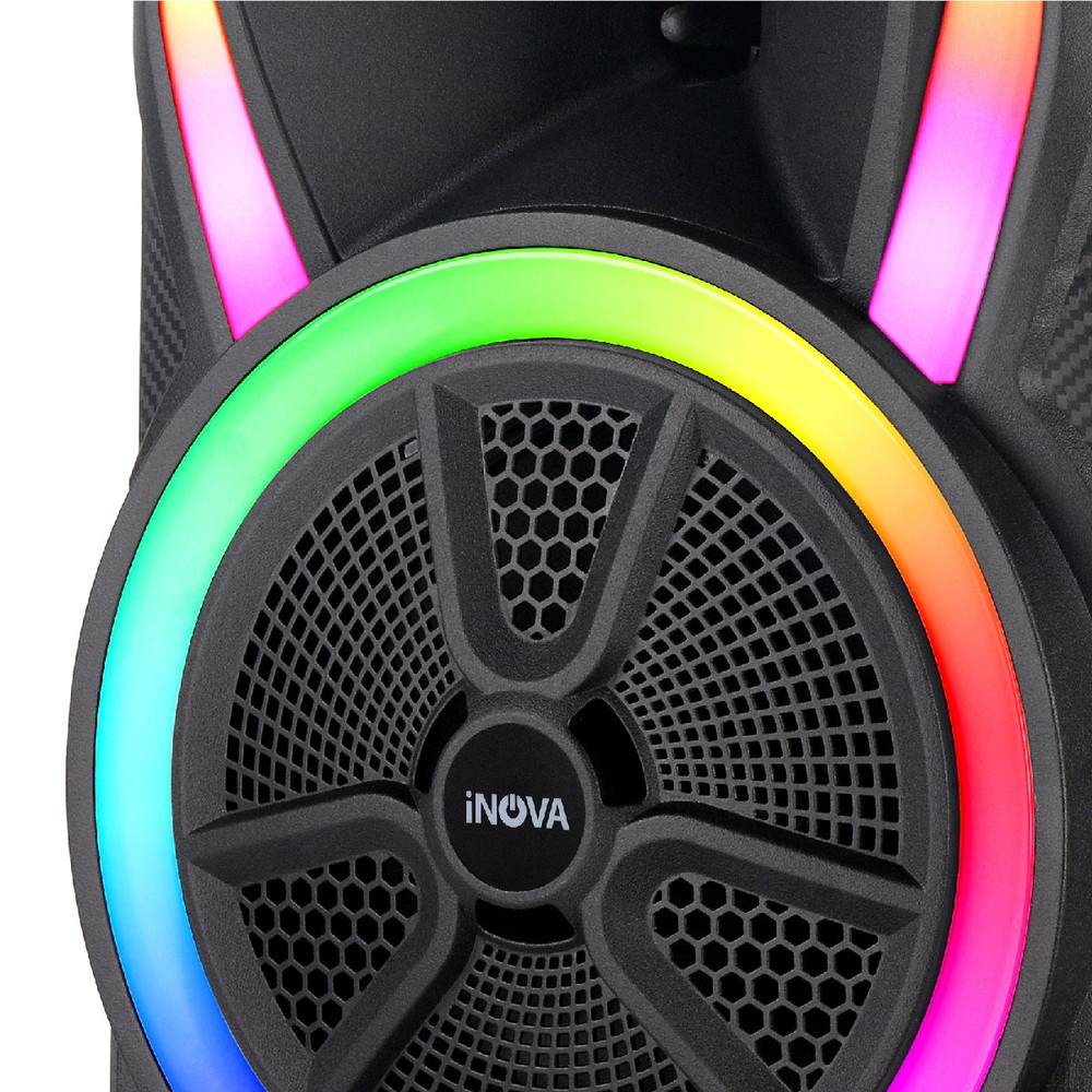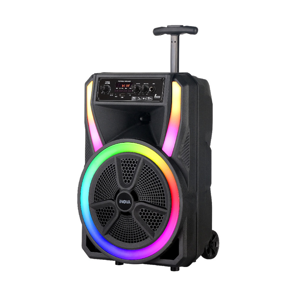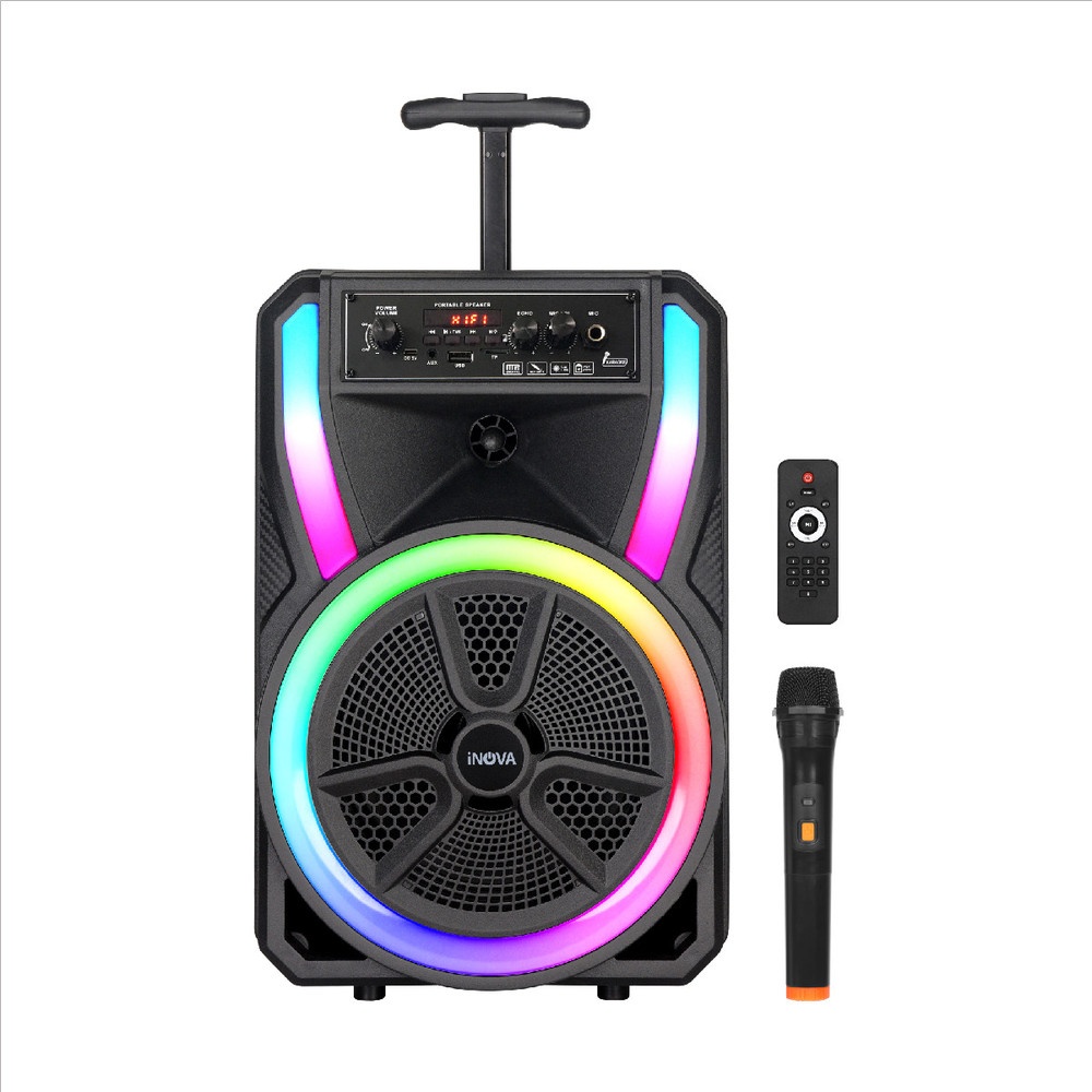 Inova ชุดลำโพงอเนกประสงค์ขนาด 8 นิ้ว รุ่น JMYX001 สีดำ ชุดลำโพงอเนกประสงค์ขนาด 8 นิ้ว ที่มาพร้อมกับไมโครโฟนไร้สายและรีโมทคอนโทรล ดีไซน์สวยงาม สีสันสดใส มาพร้อมกับแบตเตอรี่ลิเธียมขนาด 3600MAH และยังมีที่ดึงสำหรับเคลื่อนย้ายได้สะดวกสบาย เหมาะกับใช้สำหรับงานรื่นเริง งานกลางแจ้ง หรือใช้สำหรับงานขายนอกสถานที่ได้