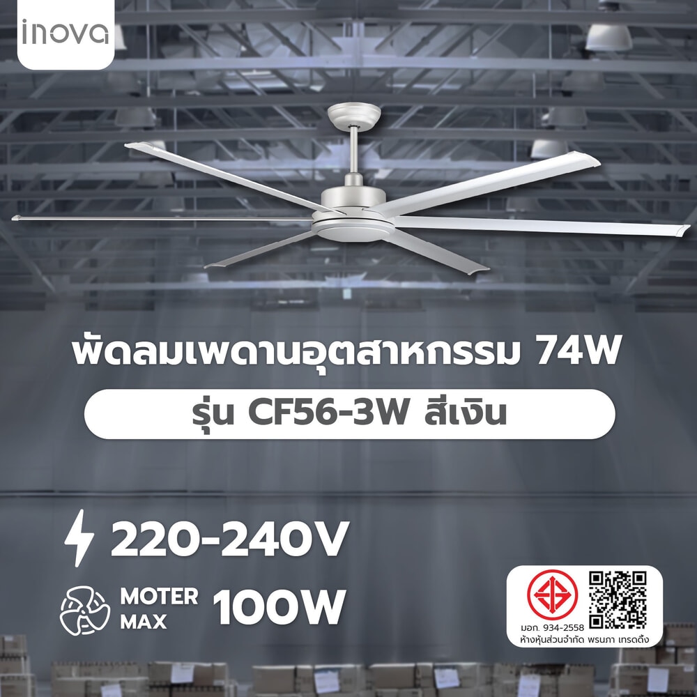 INOVA พัดลมเพดานอุตสาหกรรม รุ่น CF56-3W (สีเงิน)