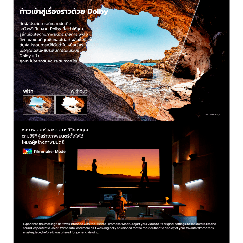 Dolby Vision & Atmos / HDR10 / HLG: รองรับเทคโนโลยีภาพและเสียงที่ให้ประสบการณ์การรับชมที่สมจริง