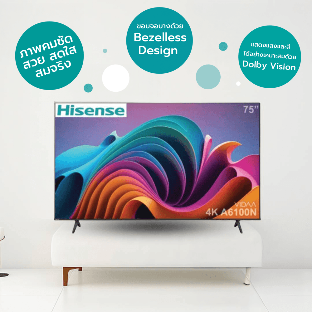 UHD LED 75 นิ้ว HISENSE (4K, VIDAA) 75A6100N