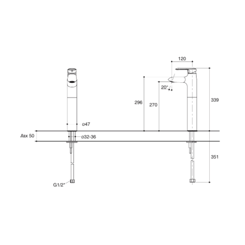 1.ก๊อกเดี่ยวล้างหน้าทรงสูงแบบก้านโยก KOHLER รุ่น KUMIN