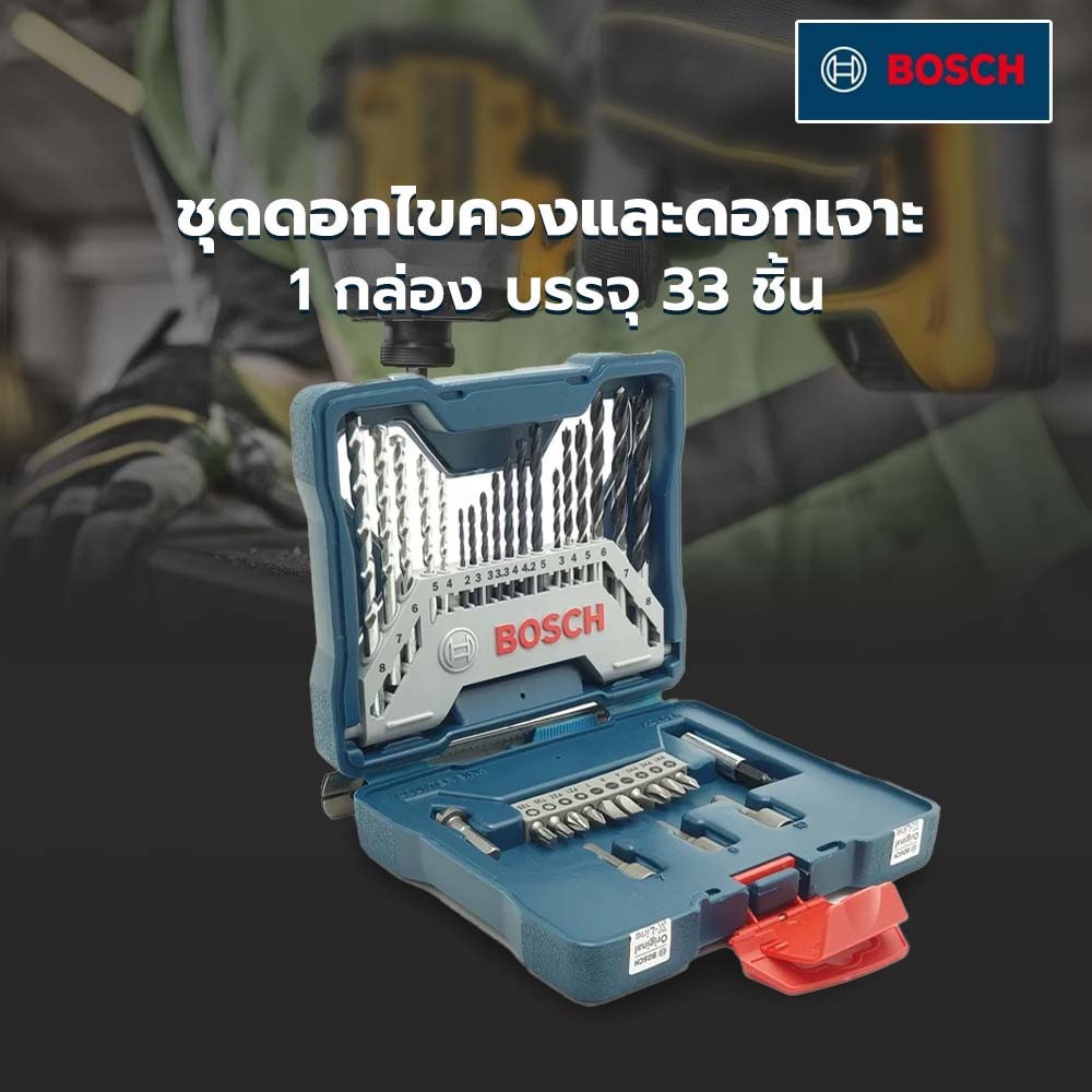 เเละ Bosch ชุดดอกไขควงและดอกเจาะ 33 ชิ้น (X- line 33 pcs) ก็เป็นหนึ่งในเครื่องมือที่มีคุณภาพเหมาะสำหรับกลุ่มผู้ใช้เครื่องมือระดับ มืออาชีพ