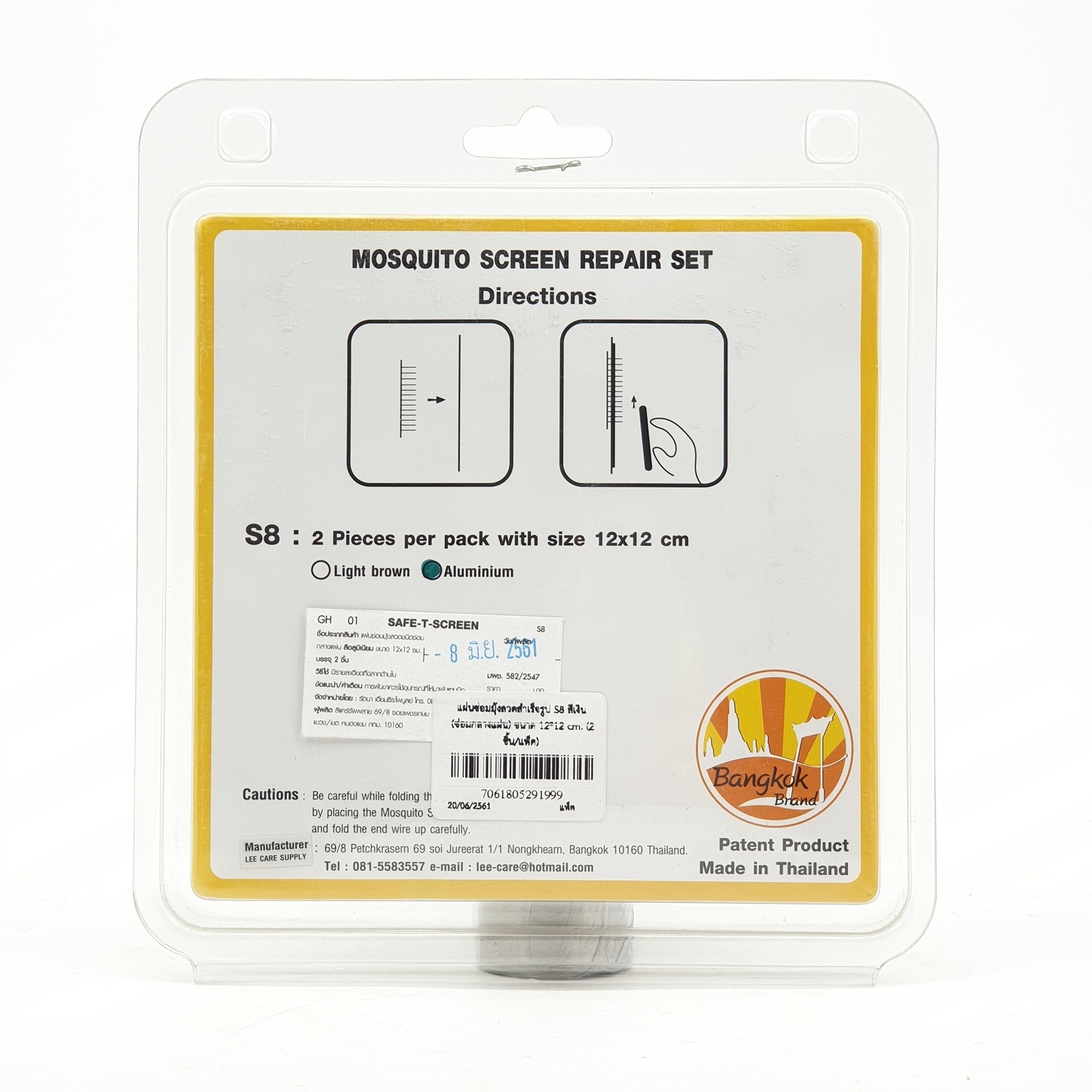 แผ่นซ่อมมุ้งลวดสำเร็จรูป S8 สีเงิน (ซ่อมกลางแผ่น) ขนาด 12*12 cm. (2ชิ้น/แพ็ค)