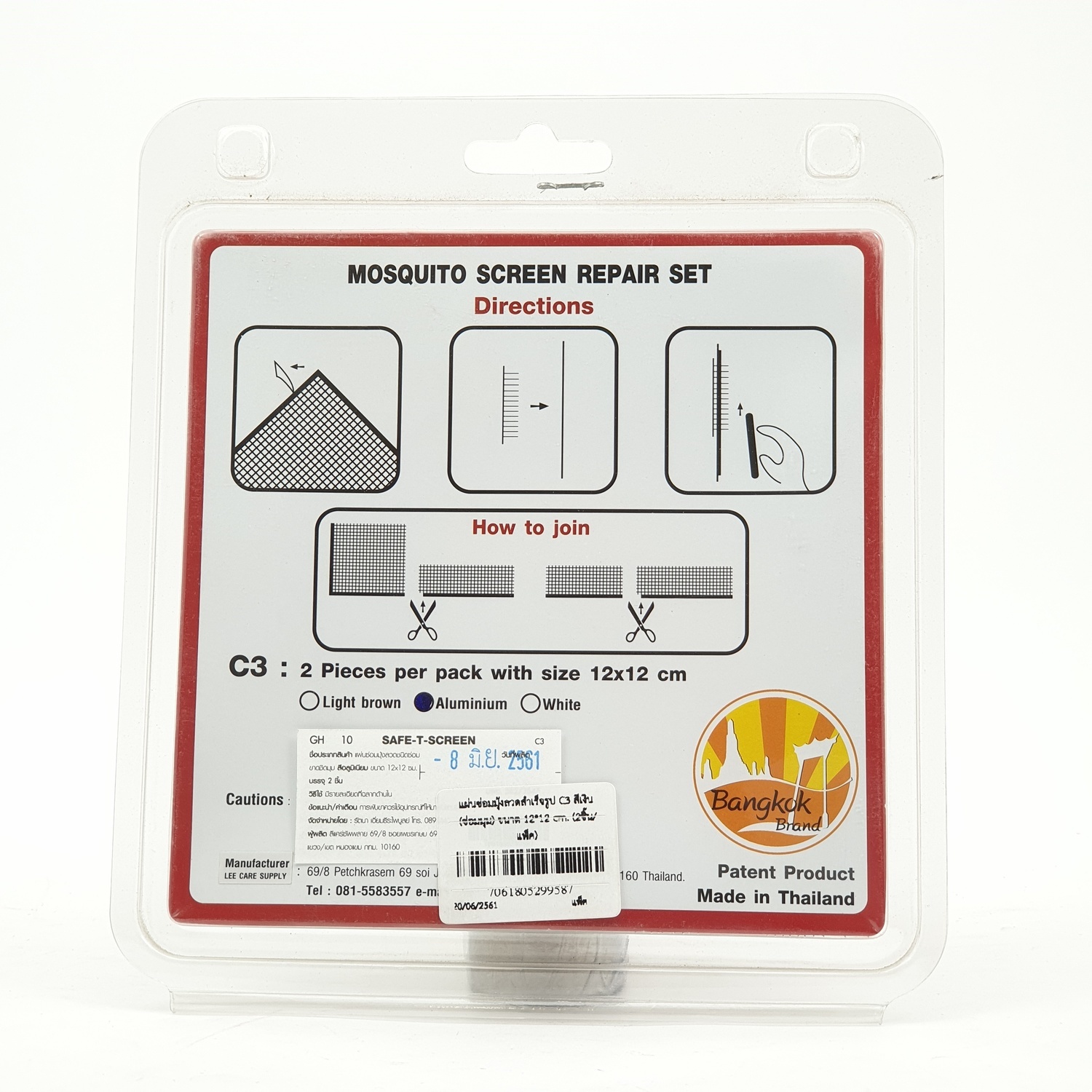 แผ่นซ่อมมุ้งลวดสำเร็จรูป C3 สีเงิน (ซ่อมมุม) ขนาด 12*12 cm. (2ชิ้น/แพ็ค)