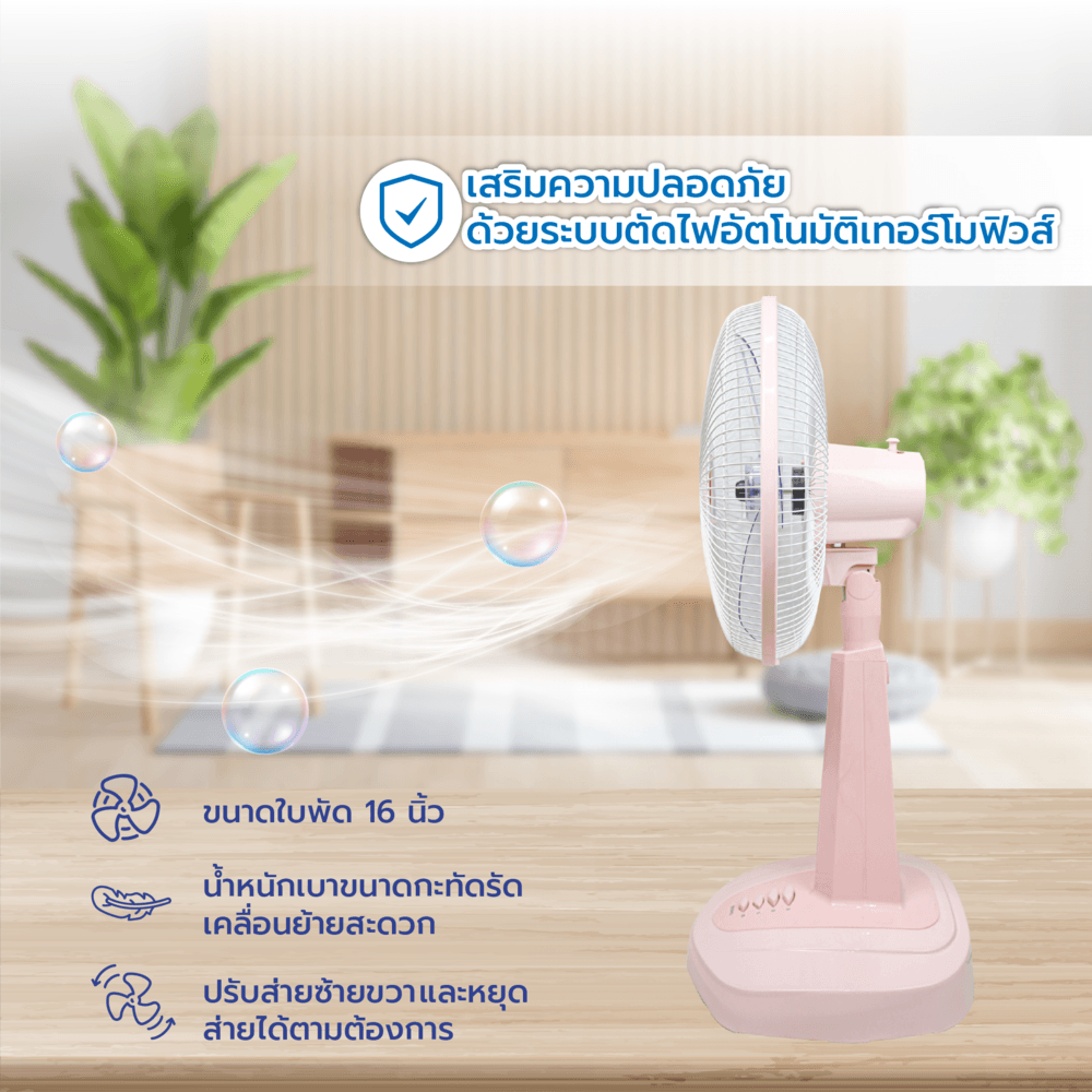 3.ไม่ควรแหย่นิ้ว หรือวัตถุใดๆ เข้าใจช่องตะแกรง ไม่ควรวางบนที่นุ่ม เช่น เตียง โซฟา ควรวางพัดลมบนพื้นที่เรียบเท่านั้น