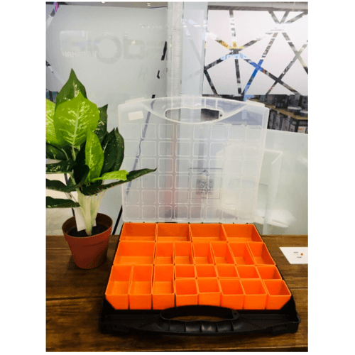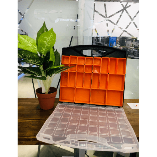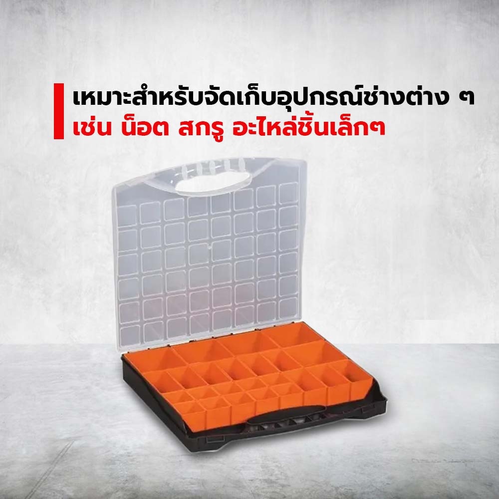 ใช้เก็บเครื่องมือช่าง มีช่องเล็กใส่เครื่องมือได้หลายอย่าง มีสีสันสดุดตา สามารถใส่รวมกันได้หลากหลาย ง่ายต่อการพกพา